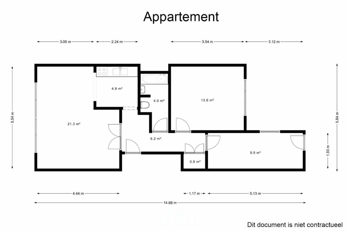 Het appartement is in op te frissen staat: afwerking, keuken en sanitair zijn gedateerd. Dit biedt de koper de mogelijkheid om het geheel naar eigen smaak te renoveren en te herinrichten.