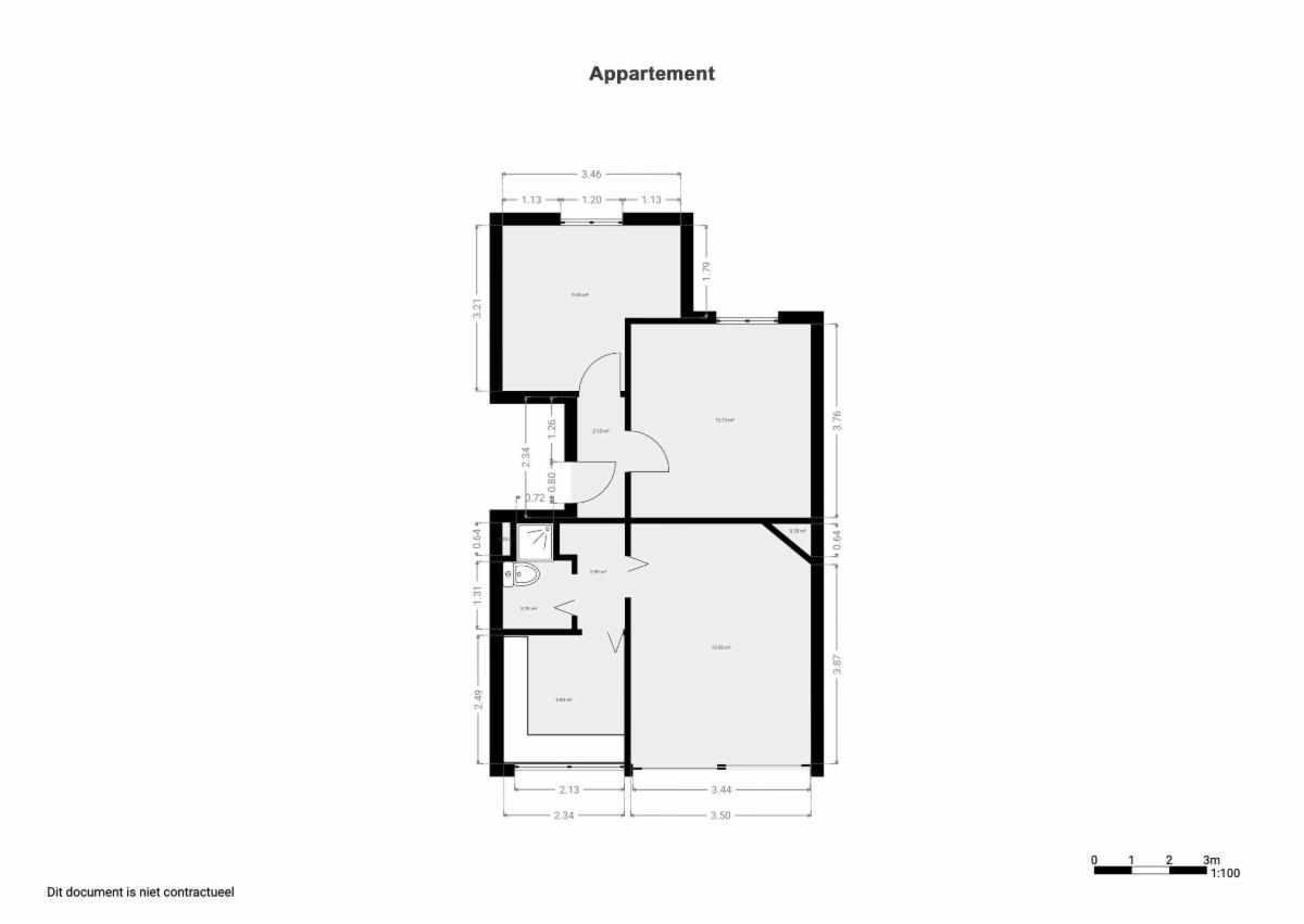 Bestaat uit een inkomhal, living, keuken, badkamer met douche en aansluiting voor een wasmachine, 2 slaapkamers en een elektrische boiler geplaatst in 2023.