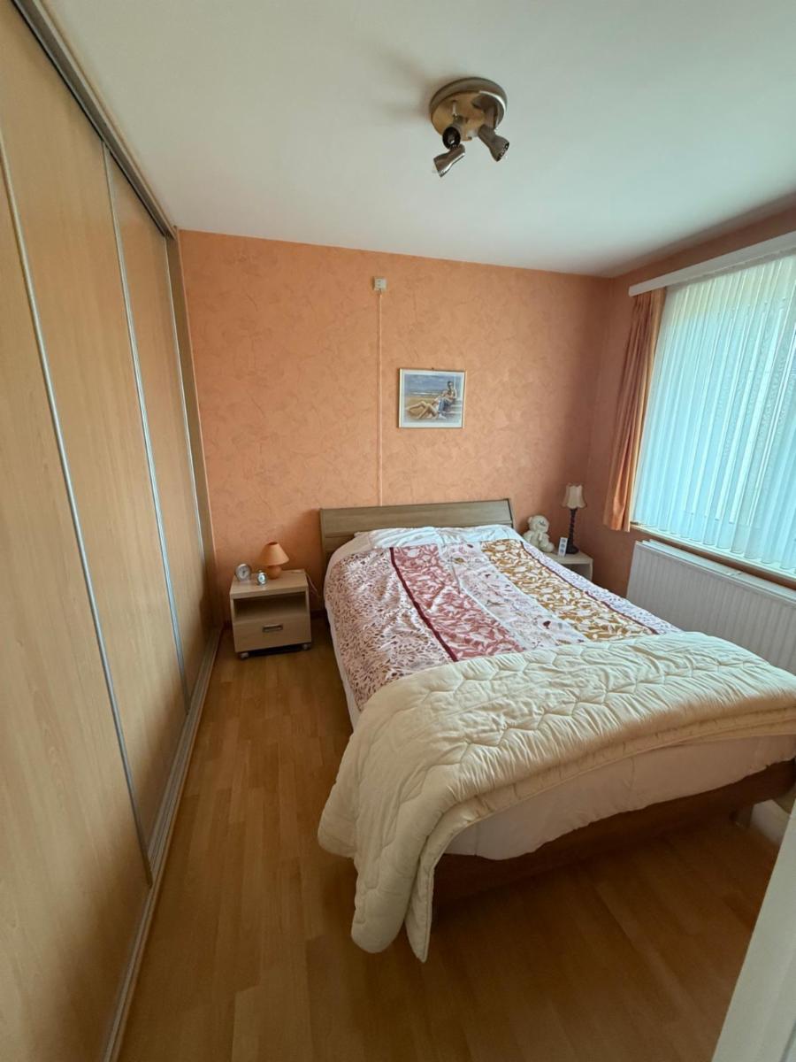 Hall d’entrée, petit vestiaire et wc, cuisine équipée, living (salon-salle à manger), hall de nuit, salle de bains, deux chambres (dont une avec placard), terrasse.