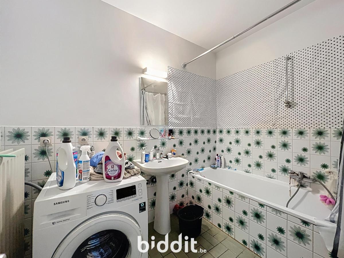 * Appartement 00.01 (gelijkvloerse verdieping): indeling: leefruimte met open keuken - 2 slaapkamers en badkamer met douche en enkele wastafel - tuin (actuele huurprijs: € 581,40/maand) - EPC: label C = 240 kWh/m² jaar.