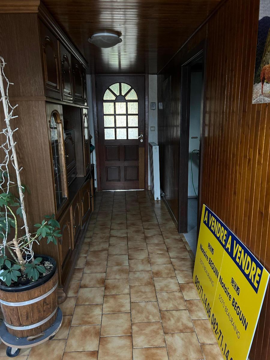 Rez-de-chaussée : hall d’entrée, salon – salle à manger, cuisine semi-équipée, arrière-cuisine avec accès au grenier/mezzanine, buanderie avec douche et WC.