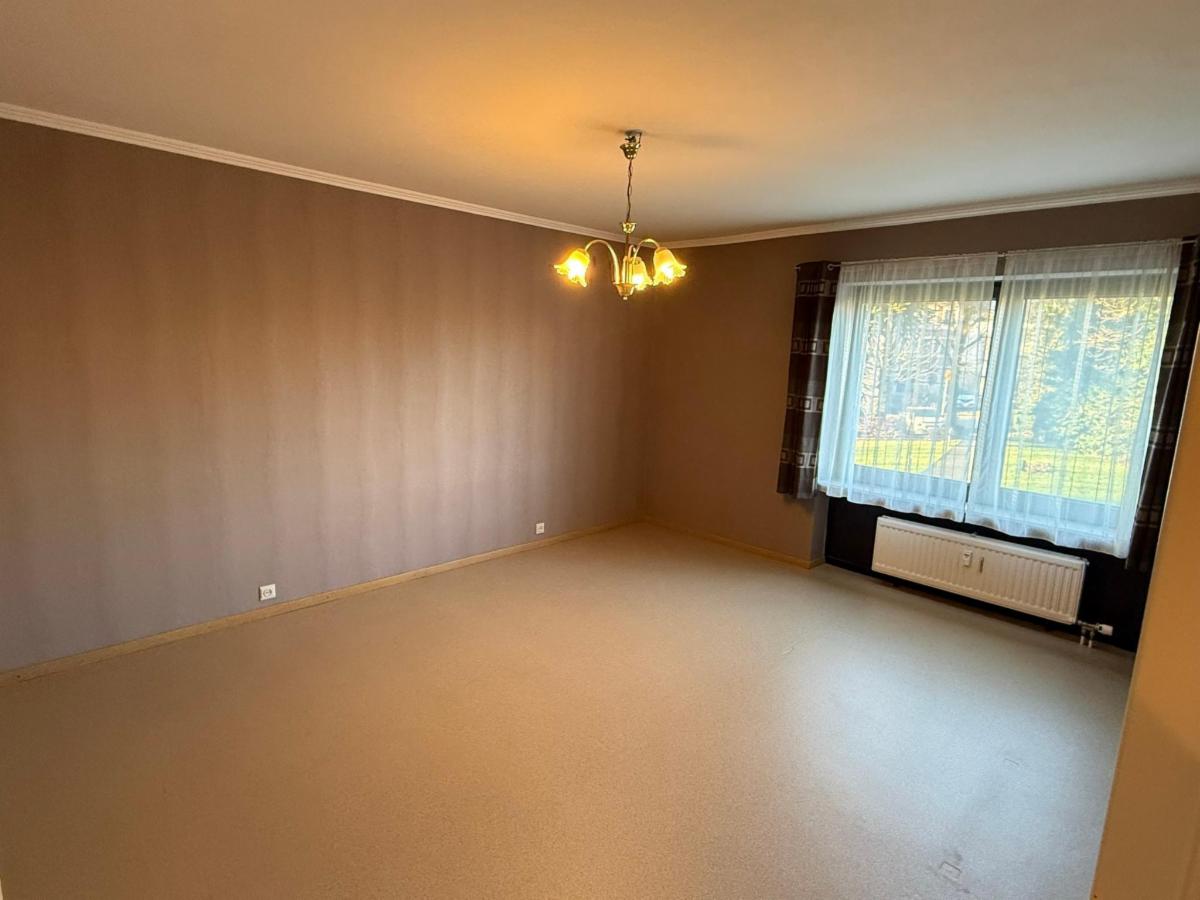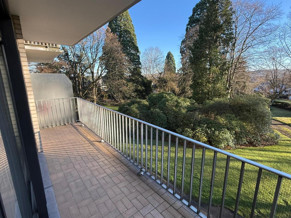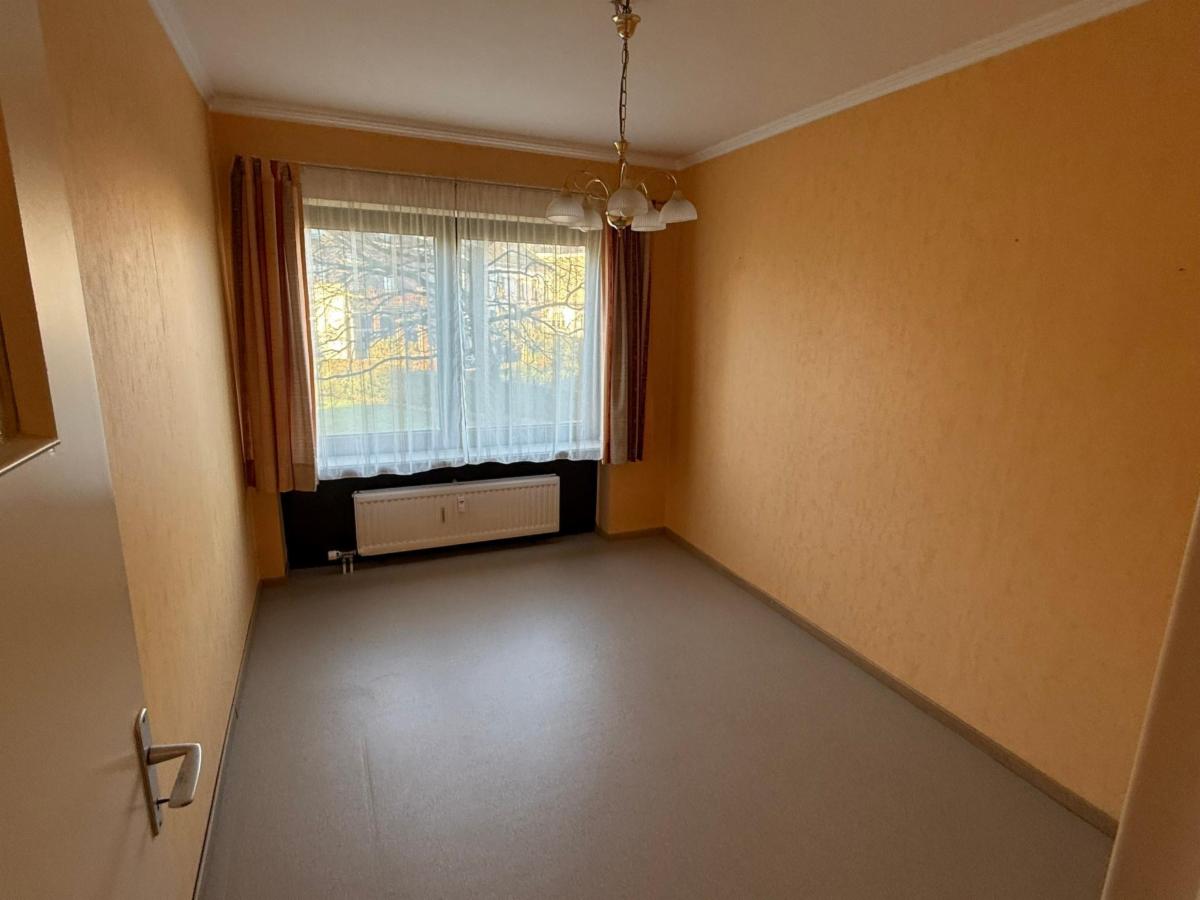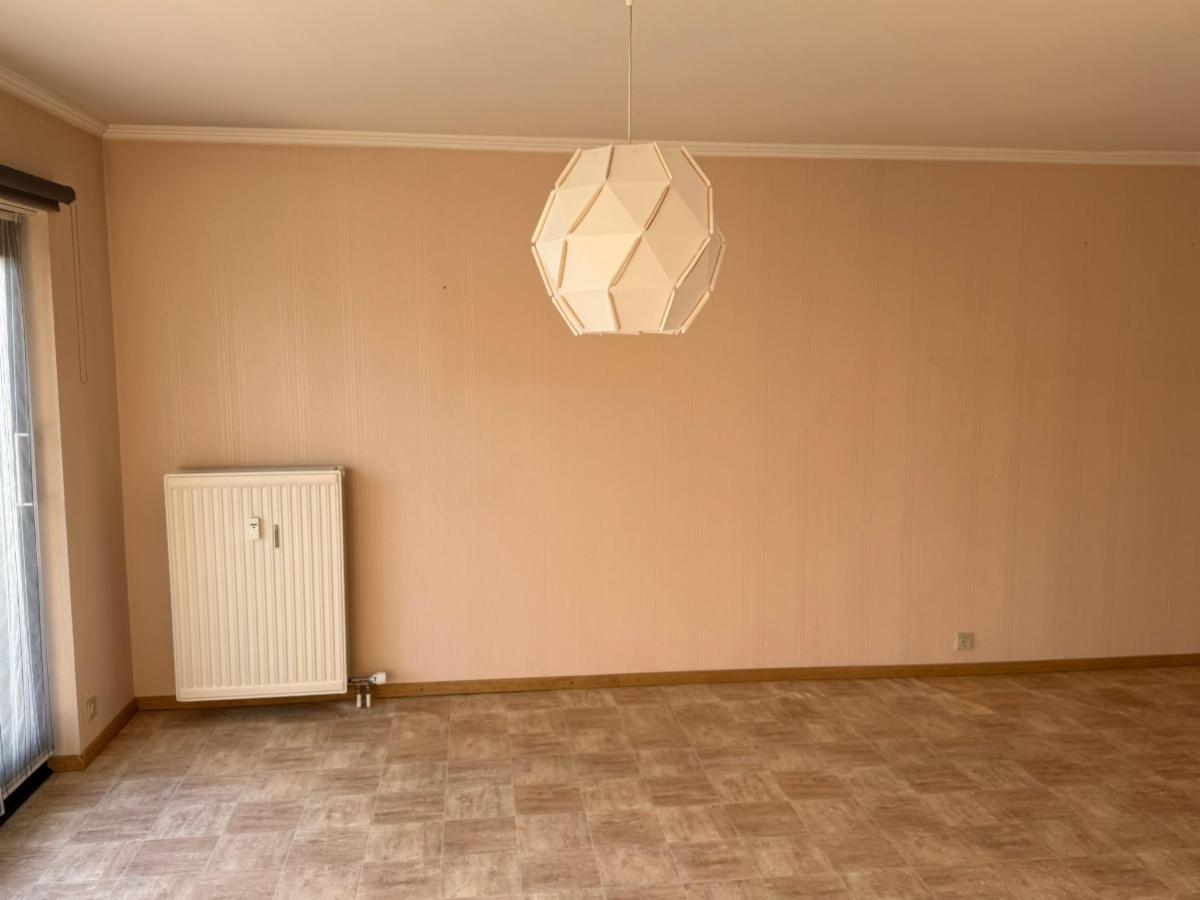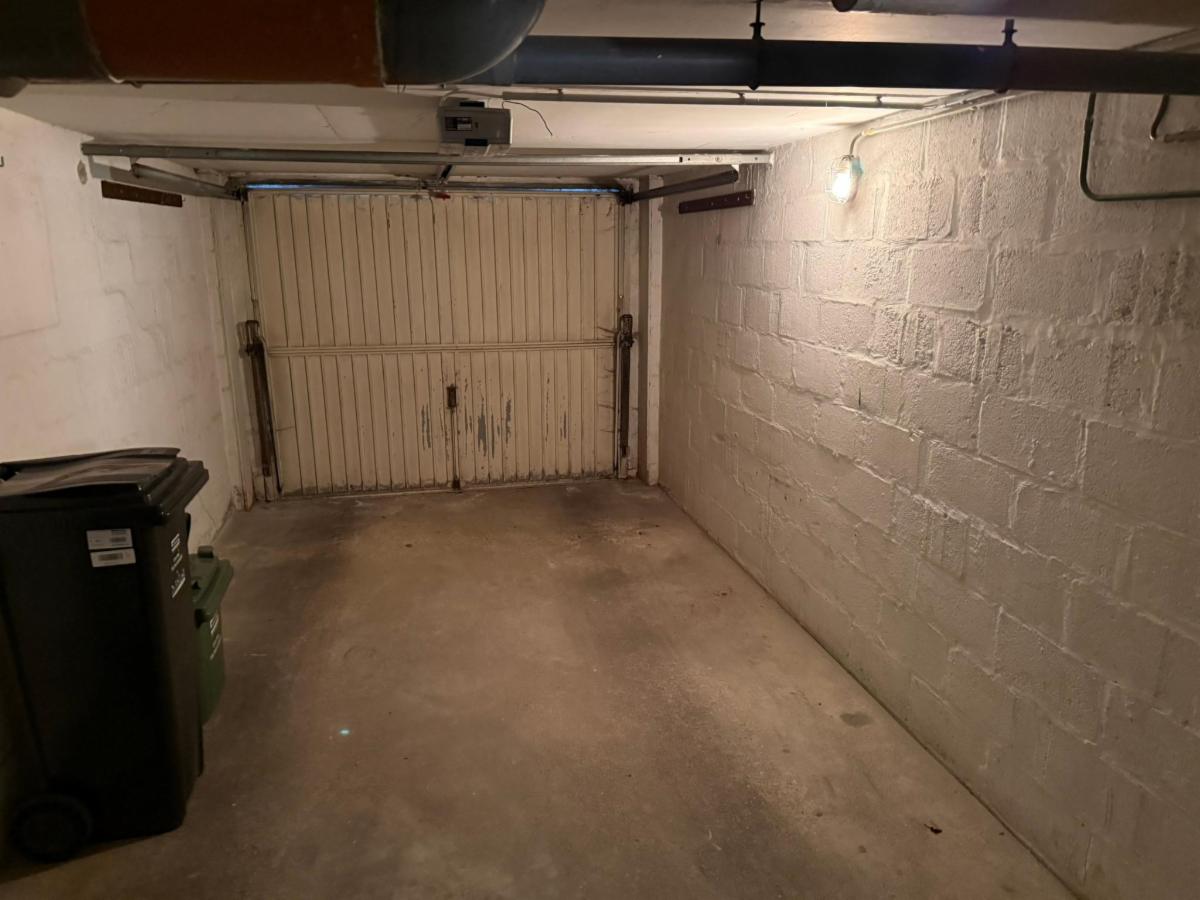 Hall d’entrée, cuisine équipée, living avec vue dégagée sur le parc et porte fenêtre avec accès à la terrasse, WC séparé, SDB (un lavabo et une baignoire), un débarras et deux chambres, cave C19 et garage G03 avec porte automatisée. Châssis DV en PVC et en bois. Chauffage central collectif au gaz avec calorimètre. Décompteur pour eau chaude et froide. Compteur électrique individuel. Montant provision mensuelle : 454 € (chauffage, eau et les charges communes) (documents du syndic disponibles à l'Etude). PEB B n° 20251124000908. Installation électrique non conforme. Superficie habitable : 86 M². RC : 1.142 €. Situation extrêmement calme. Bien à rafraîchir.