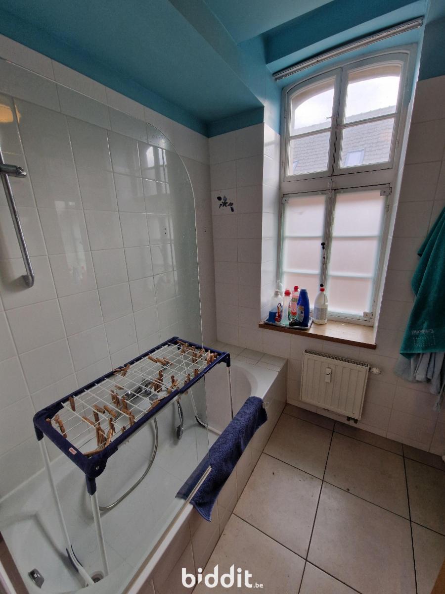 Bel appartement une chambre en centre ville dans la Résidence des Augustins, comprenant : 1er étage : hall d'entrée avec placard, WC, cuisine équipée, beau living, salle de bains avec baignoire et lavabo, une grande chambre - aux sous-sols : une cave - châssis double vitrage - chauffage central au gaz de ville