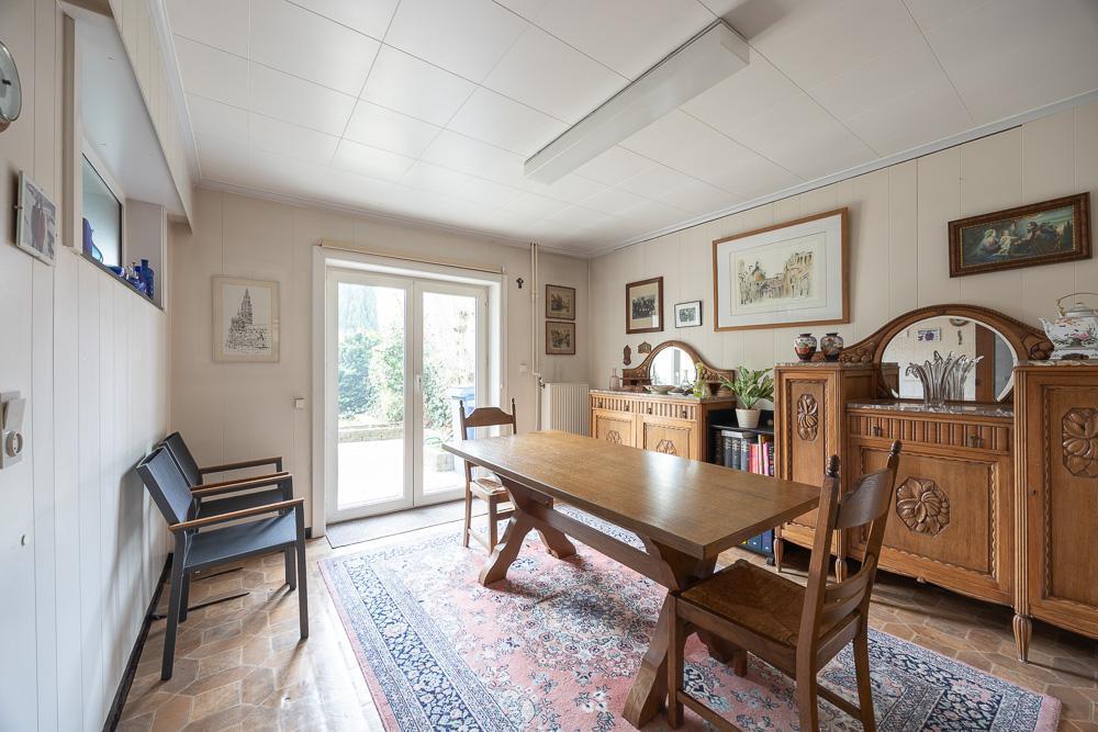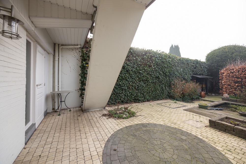 - glv: inkomhal met vestiaire en trap naar 1ste verdiep, garage (ingebouwde kasten), wasplaats, koele berging, tuinkamer, verbindingsgang naar tuin (bergruimte met ingemaakte kasten), tuin met tuinhuisje;