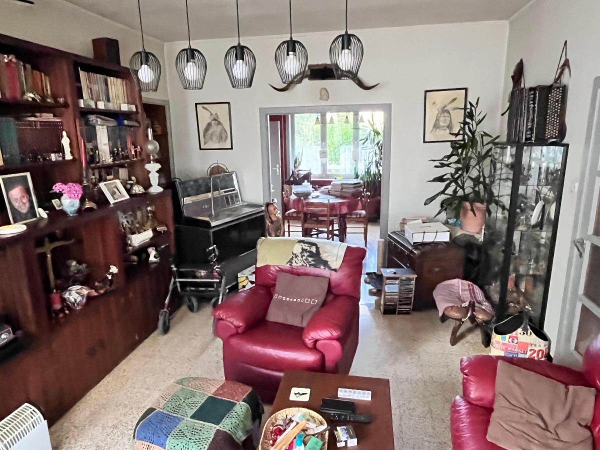 Belle maison avec très beau jardin composée au rez: hall, WC, living, cuisine, buanderie, garage, et à l'étage: SDB et 2 chambres et bureau.