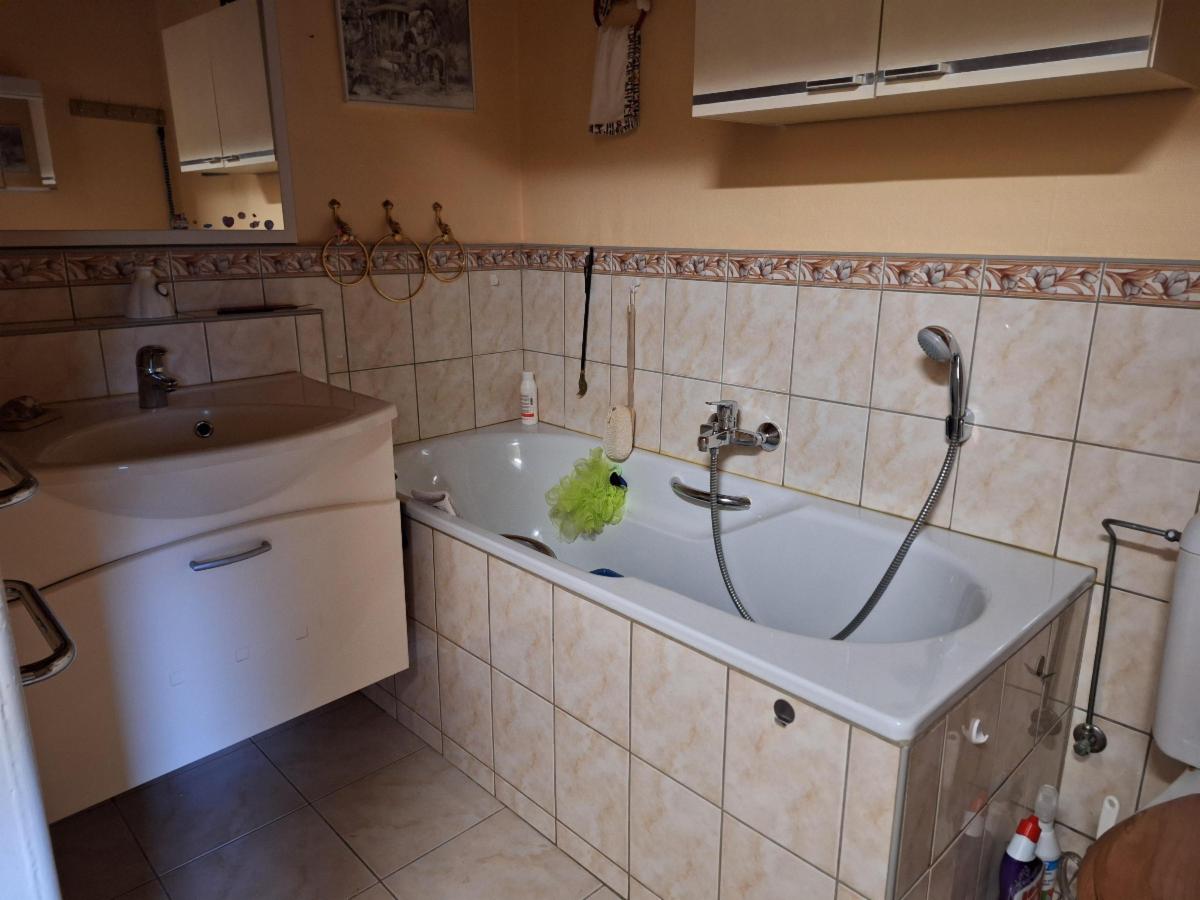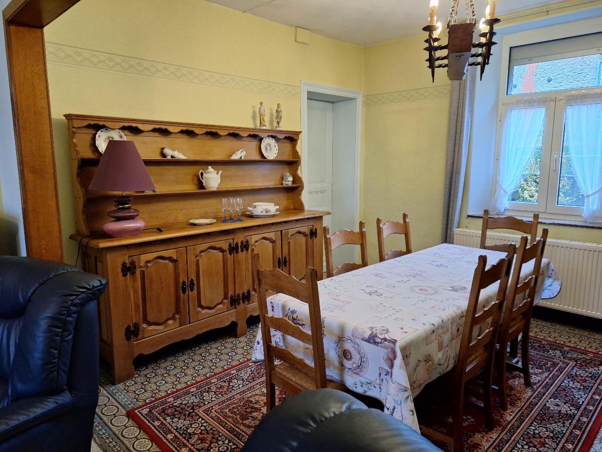 Rez-de-chaussée: hall d'entrée, cuisine, salon, salle à manger, buanderie salle de bains équipée (bain) avec WC, garage non attenant terrasse non couverte (gravier), jardin arboré, garage non attenant