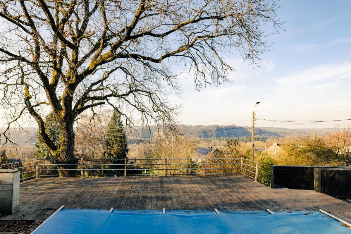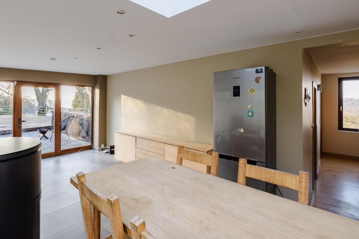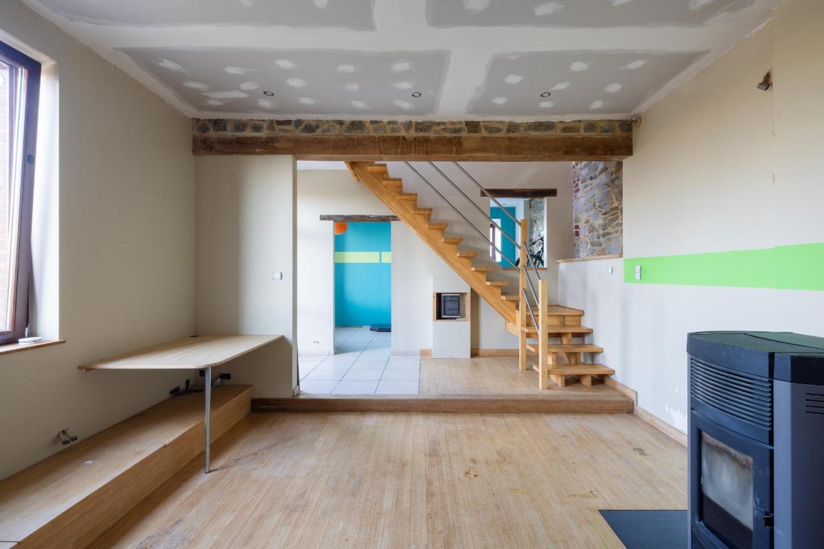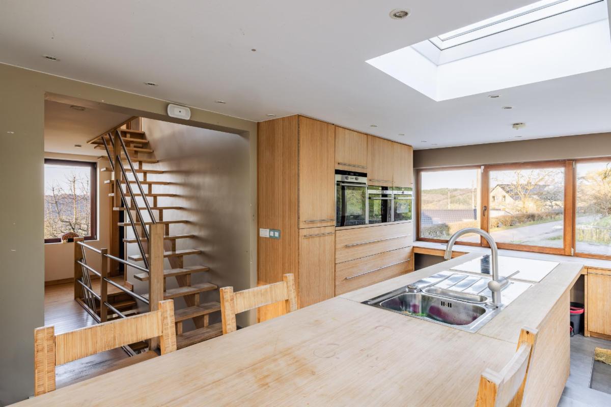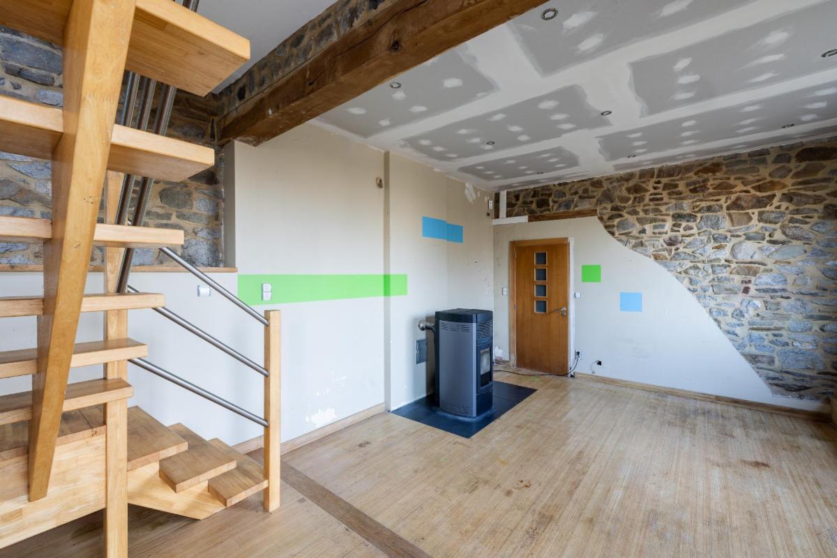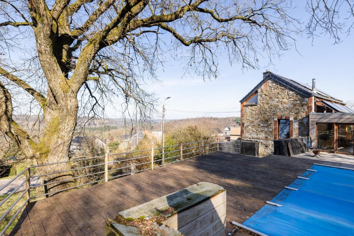 Belle maison 4 façades en brique à vendre à Kin-Stoqueu avec une belle grande terrasse et une piscine, composée au rez-de-chaussée d'une grande pièce qui servait auparavant comme living avec escalier vers les pièces de vie à l'étage, d'une ancienne cuisine et d'une annexe compremant la chaufferie. Au premier étage, d'un hall avec escalier vers le deuxième étage, cuisine ouverte dans l'annexe avec portes fenêtres tant vers le parking, que vers la terrasse et la piscine, de deux chambres, et d'une salle de bains. Au deuxième étage, d'un vaste grenier aménagé en chambre avec dressing et/ou bureau attenant. Belle grande terrasse. Piscine. Petit parking au niveau du pignon est à côté de la porte d'entrée et deuxième parking avec allée d'accès jusqu'à l'annexe. Belle vue sur la vallée. Proximité des grands axes autoroutiers (Liège-Luxembourg) et proche du centre d'Aywaille. Chaudière au mazout qui n'est plus active. Deux poeles à pellets. Panneaux photovoltaïques. Electricité non conforme mais possibilité de s'arranger avec le propriétaire pour qu'elle le soit. Un verger de 220m² en face de la maison est également compris dans la vente. Visites sur rendez-vous préalable avec l'étude au 04/384.48.41.