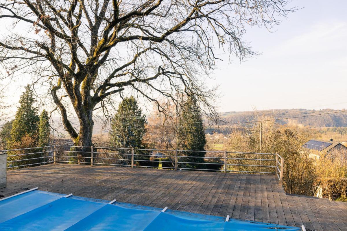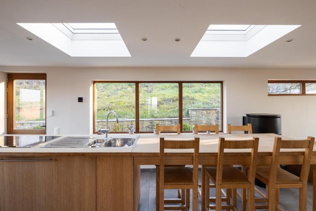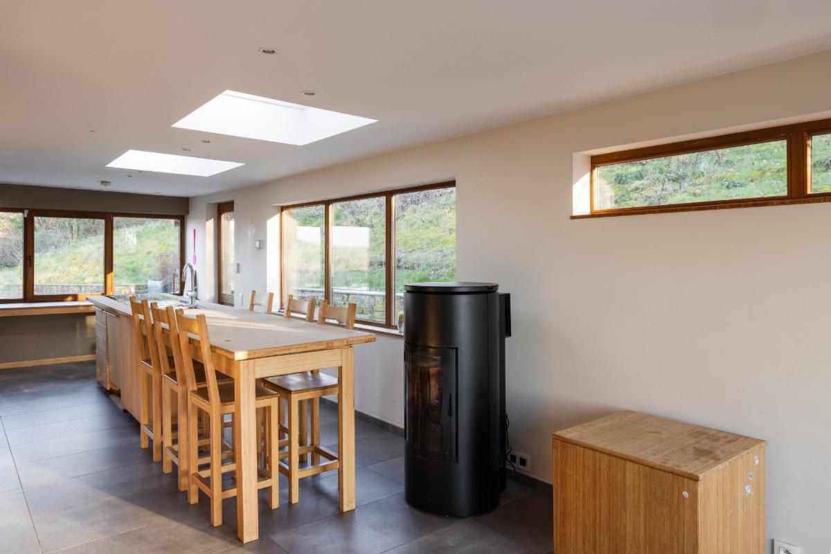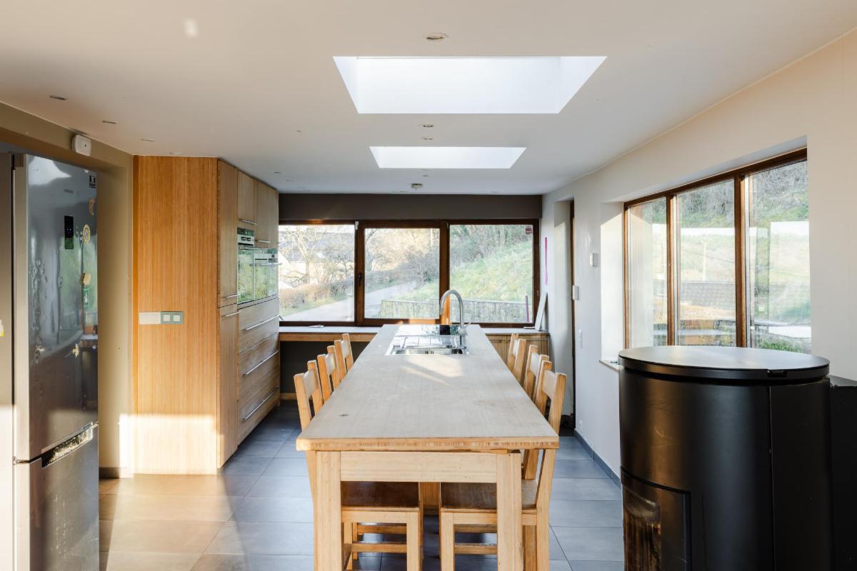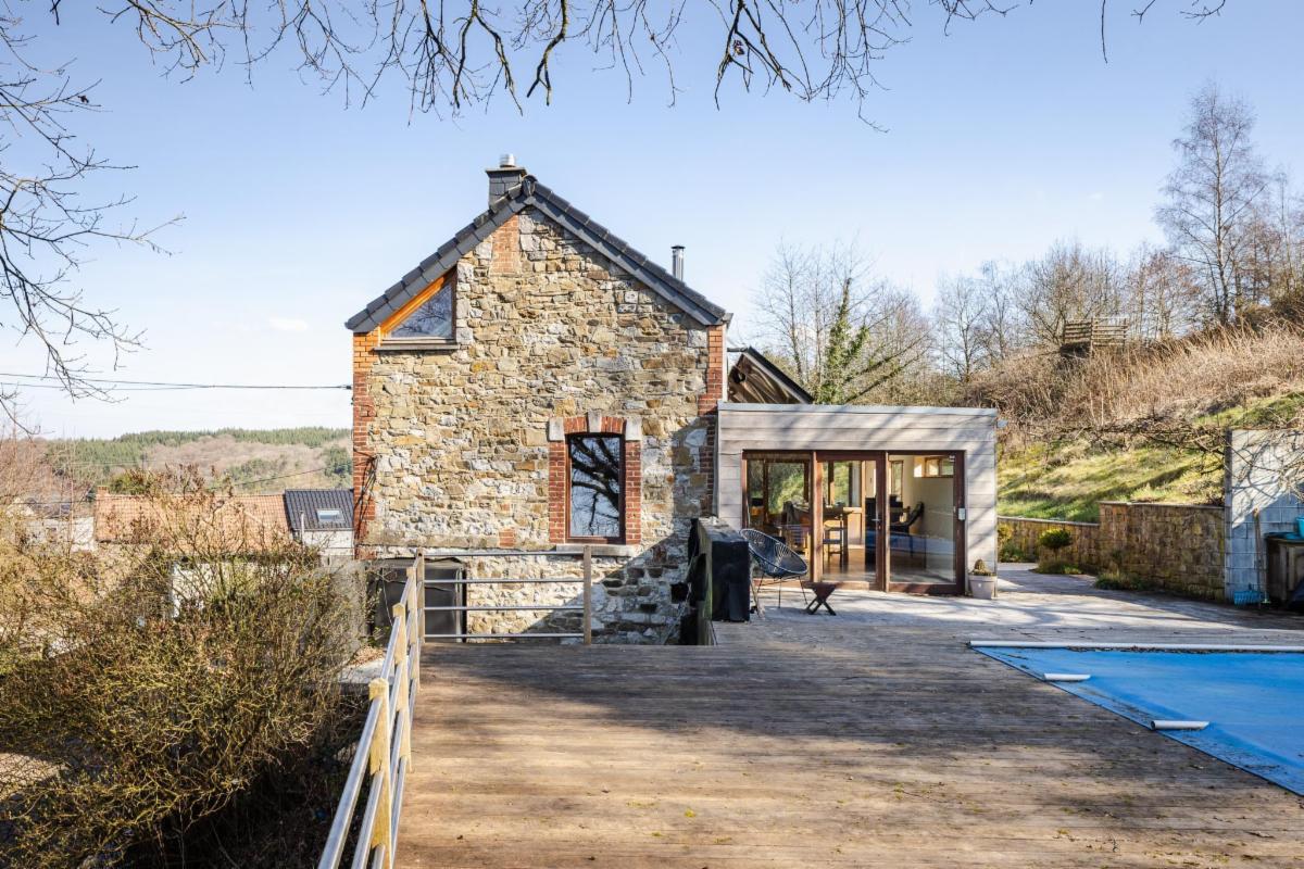 Belle maison 4 façades en brique à vendre à Kin-Stoqueu avec une belle grande terrasse et une piscine, composée au rez-de-chaussée d'une grande pièce qui servait auparavant comme living avec escalier vers les pièces de vie à l'étage, d'une ancienne cuisine et d'une annexe compremant la chaufferie. Au premier étage, d'un hall avec escalier vers le deuxième étage, cuisine ouverte dans l'annexe avec portes fenêtres tant vers le parking, que vers la terrasse et la piscine, de deux chambres, et d'une salle de bains. Au deuxième étage, d'un vaste grenier aménagé en chambre avec dressing et/ou bureau attenant. Belle grande terrasse. Piscine. Petit parking au niveau du pignon est à côté de la porte d'entrée et deuxième parking avec allée d'accès jusqu'à l'annexe. Belle vue sur la vallée. Proximité des grands axes autoroutiers (Liège-Luxembourg) et proche du centre d'Aywaille. Chaudière au mazout qui n'est plus active. Deux poeles à pellets. Panneaux photovoltaïques. Electricité non conforme mais possibilité de s'arranger avec le propriétaire pour qu'elle le soit. Un verger de 220m² en face de la maison est également compris dans la vente. Visites sur rendez-vous préalable avec l'étude au 04/384.48.41.