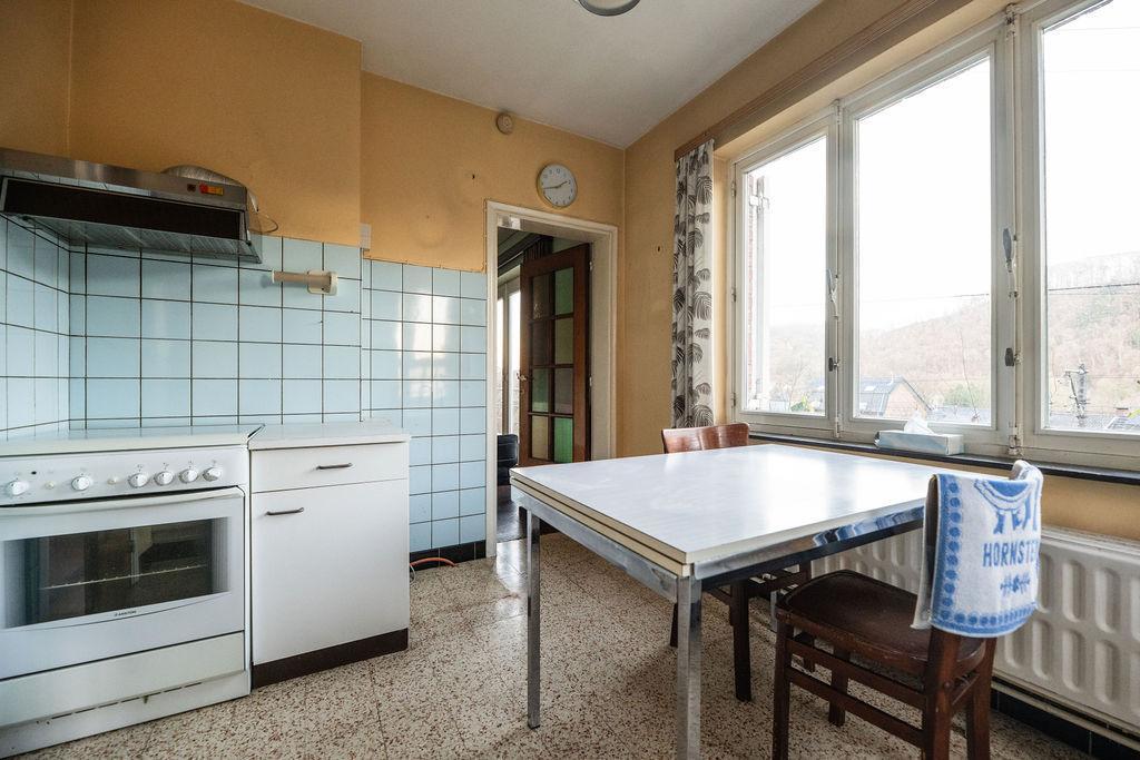 Belle maison à rénover à Aywaille, composée au rez-de-chaussée, d'un hall, d'un WC, d'une cuisine semi-équipée, d'un salon, d'une salle à manger, d'un accès aux cave et garage. Au premier étage, de deux chambres, d'un débaras, d'une salle de bain (baignoire et évier). Au sous sol, un garage.Chauffage mazout. Poele à bois. Balcon et terrasse. Pas de jardin mais un bois. Proche du centre d'Aywaille et des grands axes autoroutiers. Visites sur rendez-vous préalables avec l'étude au 04/384.48.41.