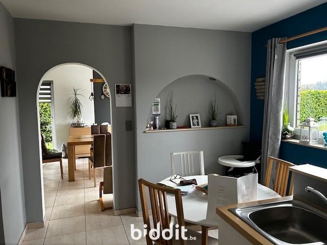 Belle maison d’habitation se composant comme suit: hall d’entrée, living donnant sur le jardin avec poêle à pellets, cuisine équipée , buanderie WC