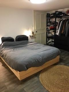 Etage : cuisine, salon, salle de bain (douche, WC, baignoire, lavabo), 1 chambre (dans les combles)
