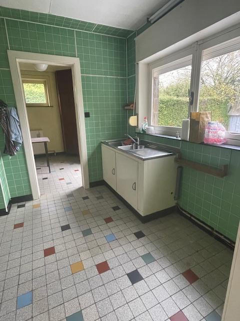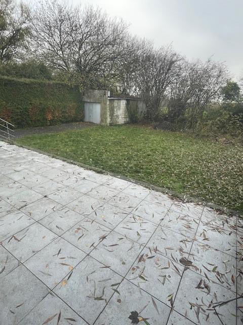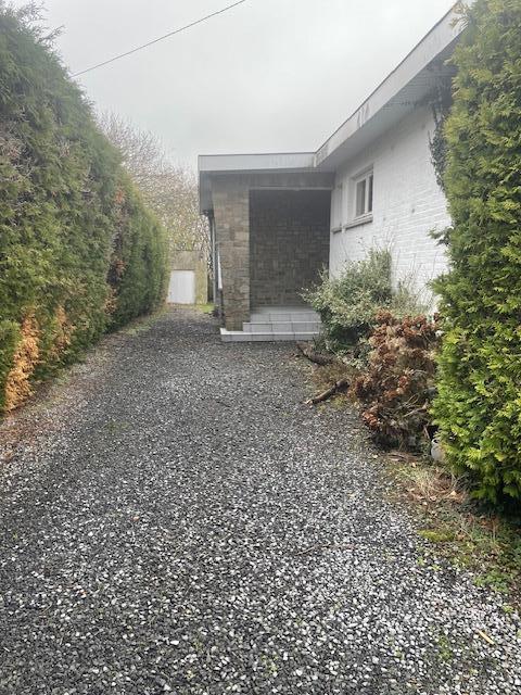 Belle villa de plain-pied comprenant corridor, wc, salon, salle à manger, bureau, cuisine semi-équipée, salle de bains, 2 chambres, cave, garage, grand jardin (environs 10 ares), terrasse, passage latéral. Chauffage central mazout.