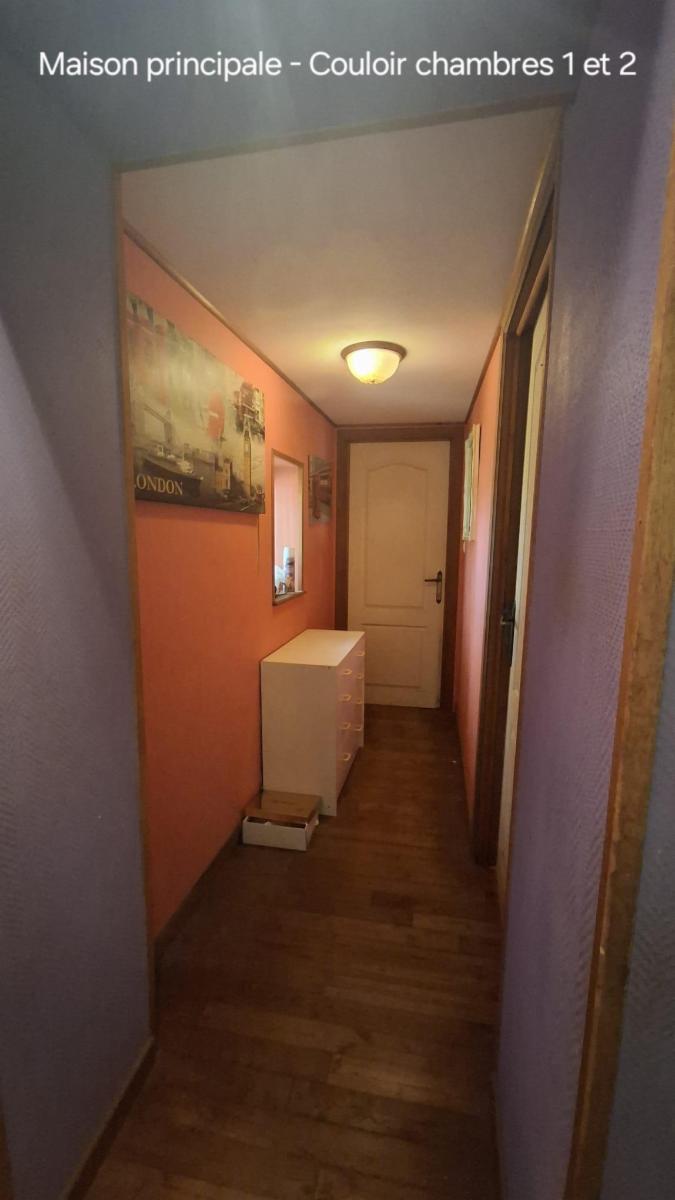 1er ETAGE sur charpente bois – plancher au sol : un hall de nuit – 3 chambres de 15,30 (5,10*3,00) – 10,29 (4,20*2,45) et de 12,08 m² (3,45*3,50) – une salle de bain, composée de d’’une baignoire, d’une douche, d’un lavabo double et wc.