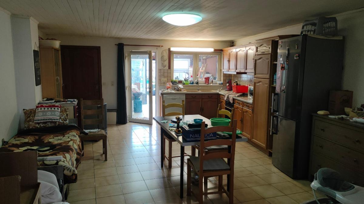 Au rez-de-chaussée : grand séjour ~ cuisine ~ salle de douche avec WC ~ véranda.