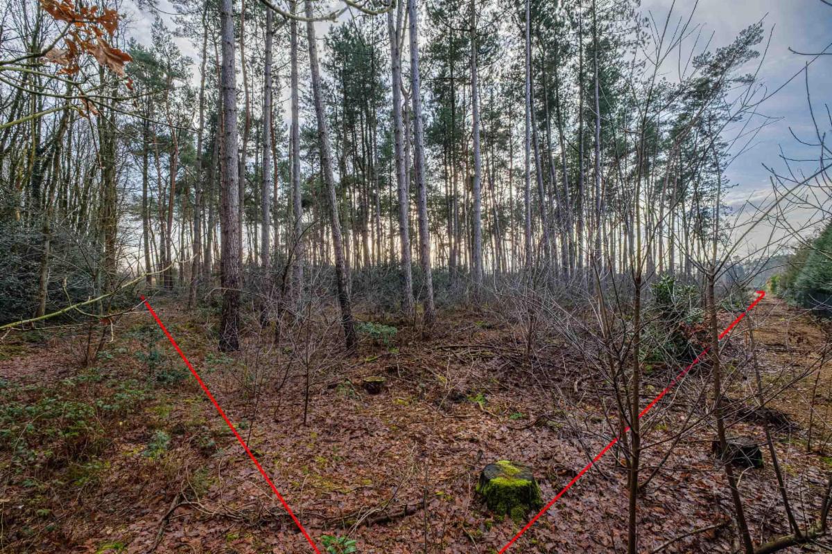 Met achterliggend perceel bos van 14.420m². Totale grondoppervlakte bouwgrond (681m²) en bos (14.420m²).
