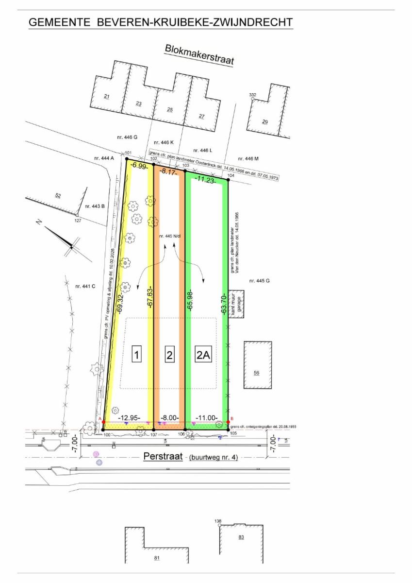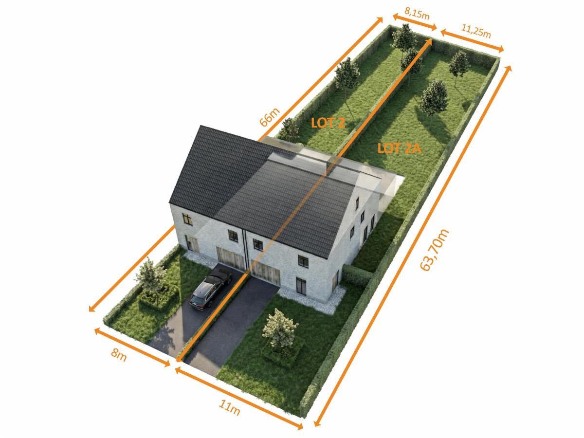 Lot 2A (VP €242.900 excl kosten) heeft een oppervlakte van ca. 713 m² en biedt de mogelijkheid tot het oprichten van een halfopen bebouwing.