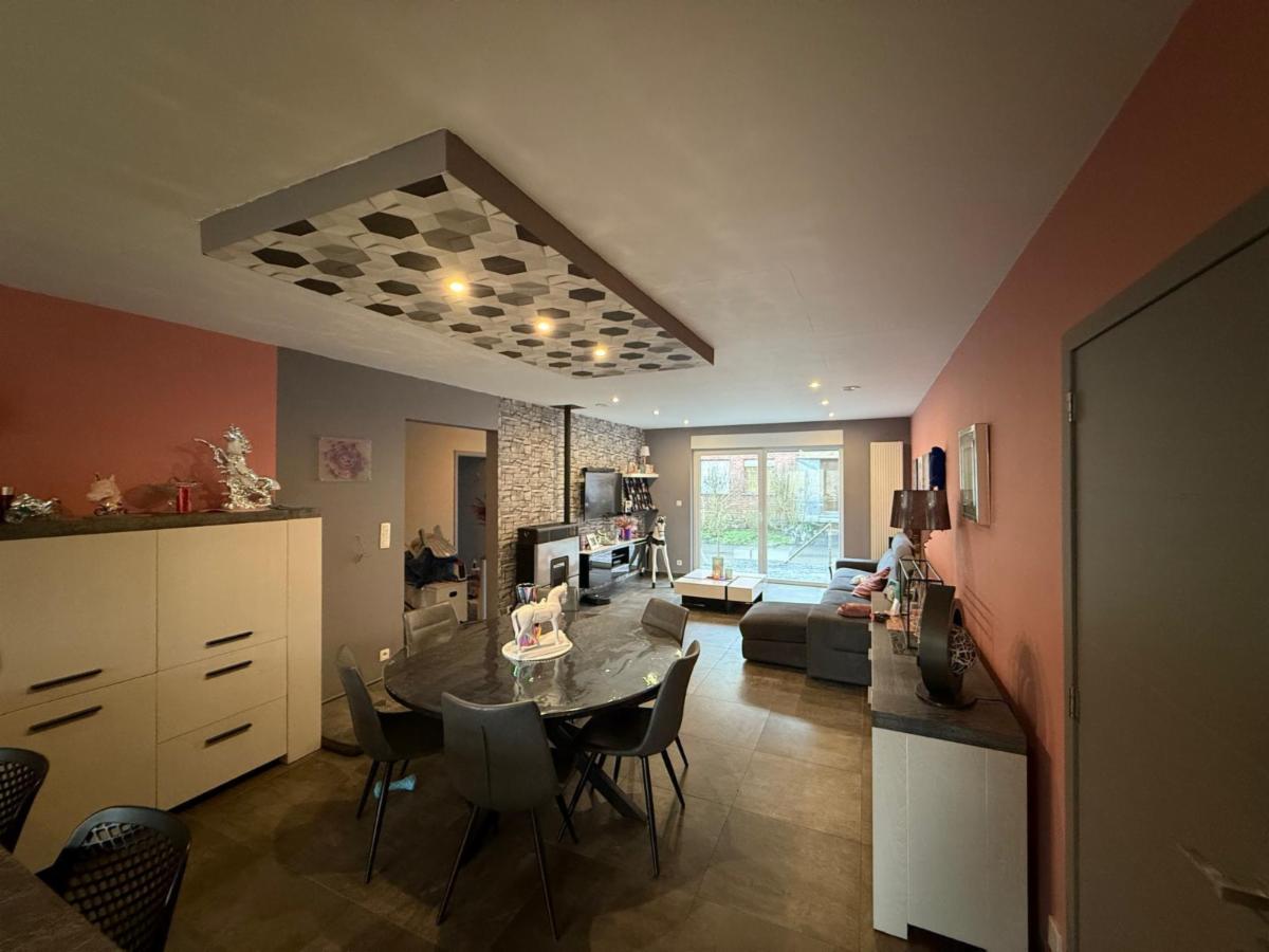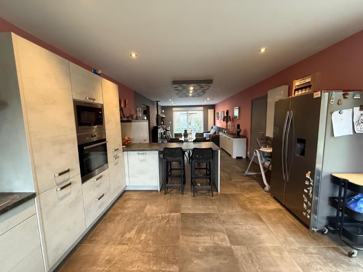 Charmant bungalow en excellent état sis sur un terrain de 600 m², comprenant un hall d’entrée, un spacieux séjour avec salon et salle à manger, une cuisine américaine, deux chambres à coucher, une salle de bains, ainsi qu’un grand garage pouvant accueillir deux voitures.