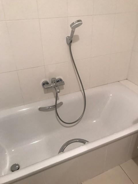 De indeling omvat een inkomhal, afzonderlijk toilet met lavabo, eethoek, gezellige zithoek met toegang tot het balkon, ingerichte keuken, praktische berging, badkamer met ligbad en dubbele lavabo, en een ruime slaapkamer.