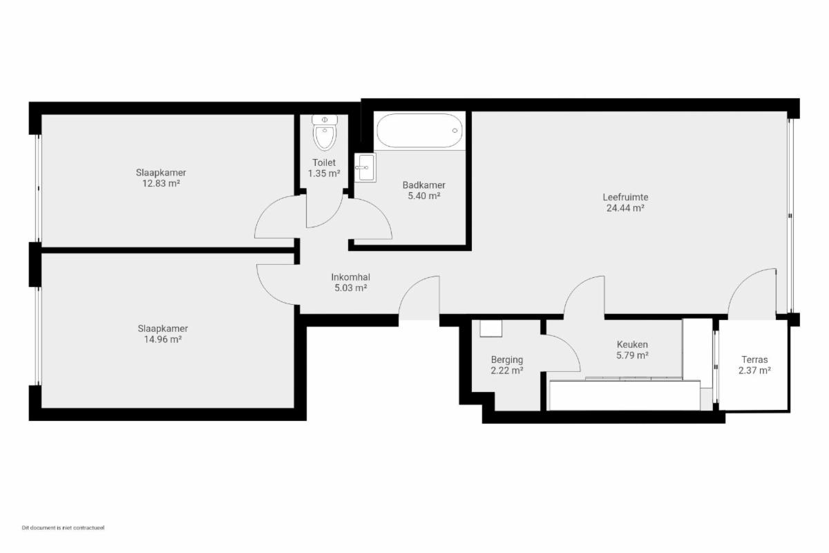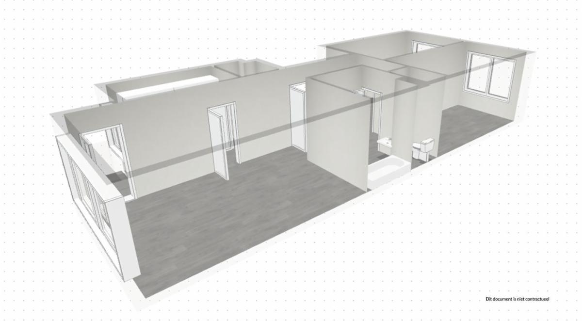 Indeling: inkomhal met toegang tot de leefruimte, keuken, berging. Via de leefruimte is er toegang tot het terras. Er zijn 2 slaapkamers, een badkamer en een apart toilet.
