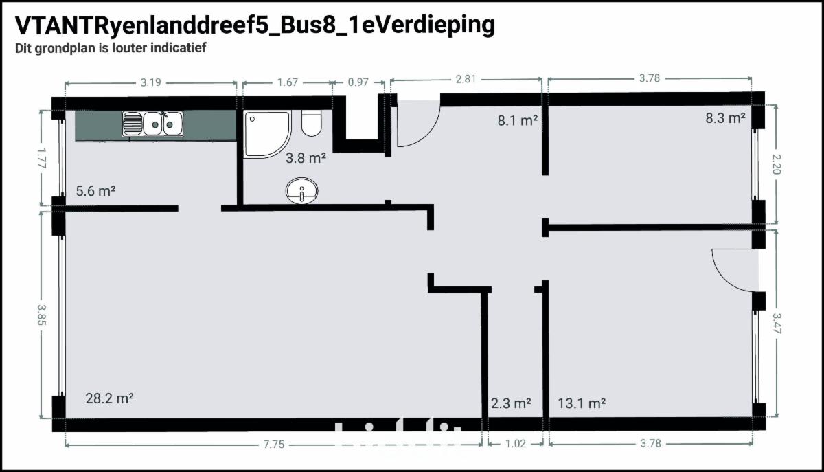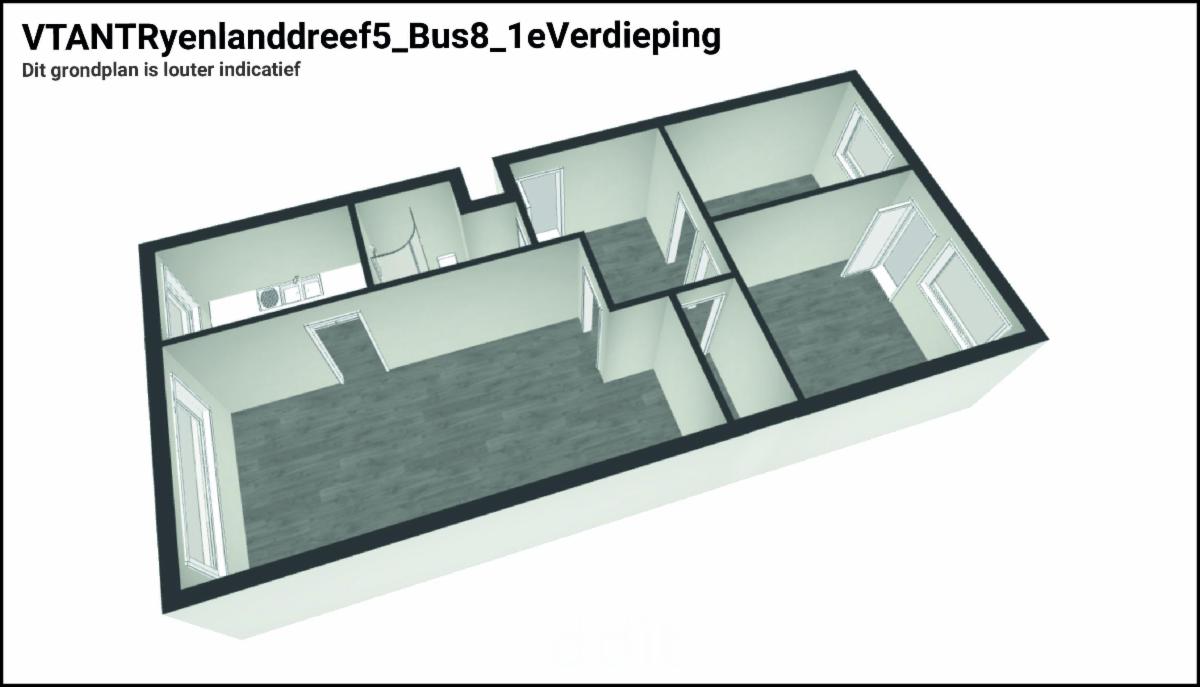 Bestaande uit 2 slaapkamers met terras, 1 badkamer met wc, bergruimte, living en keuken.