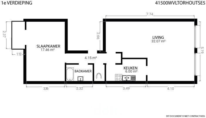 In een appartementsgebouw gelegen Torhoutsestraat 5: 1-slaapkamerappartement op de eerste verdieping.