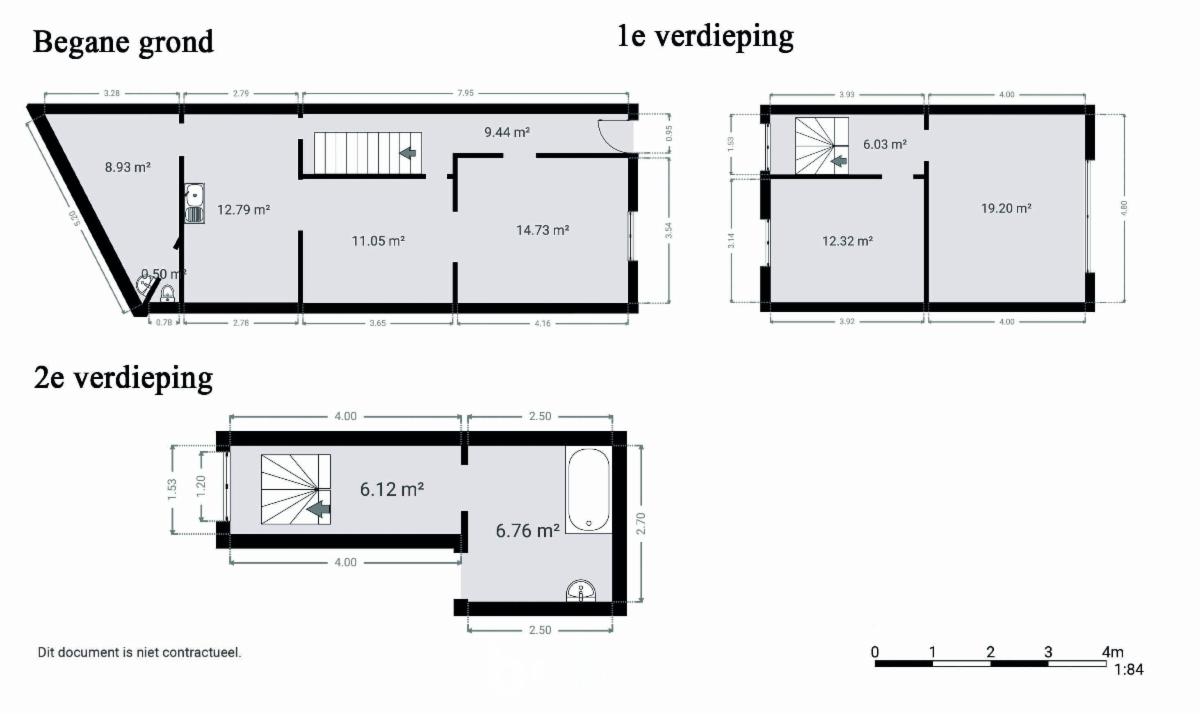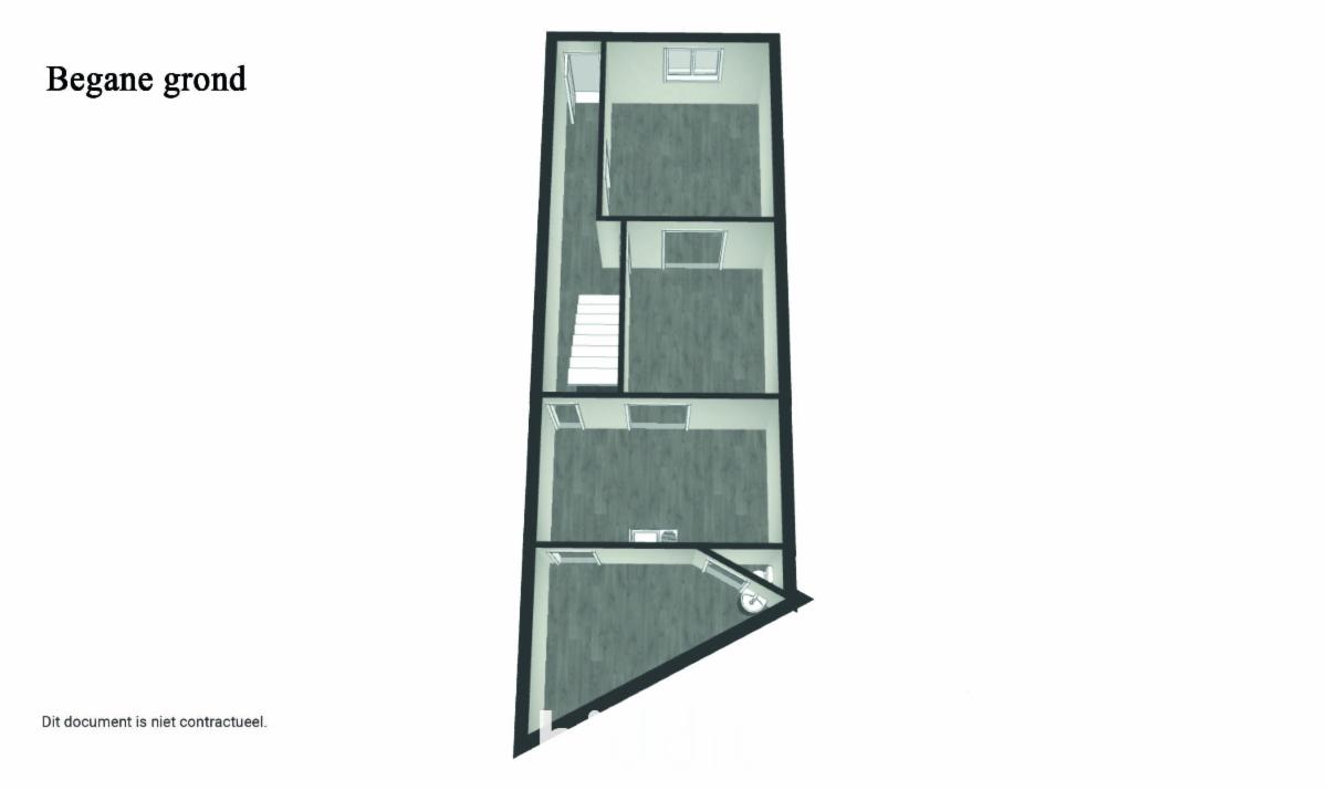 Gelijkvloers: Inkomhal met trap, woonkamer, eetkamer, keuken, bergplaats met wasbak en wc.