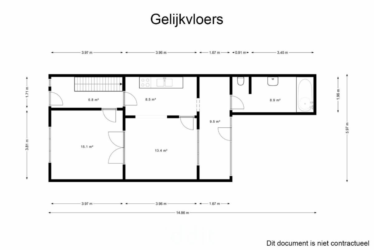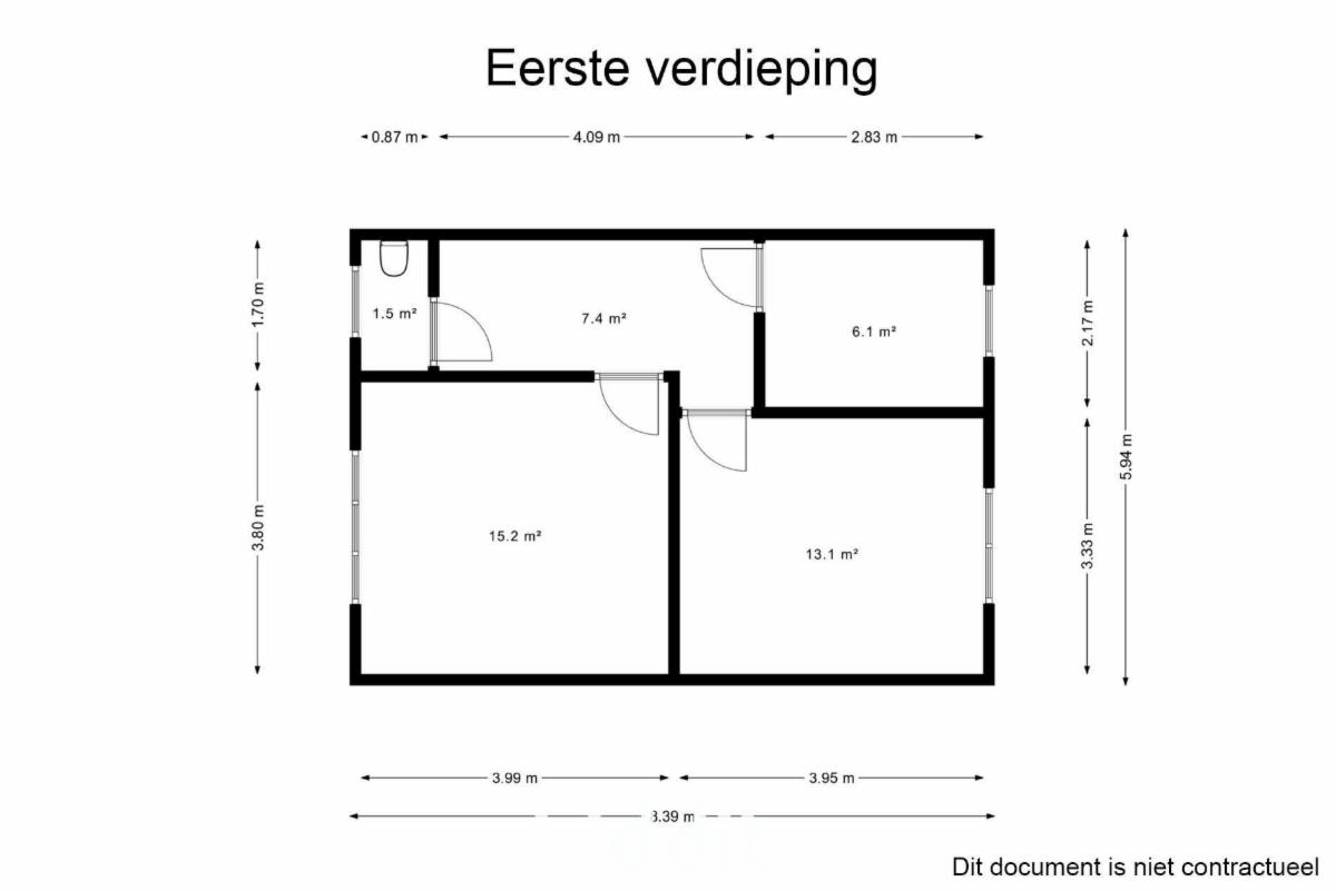 Zij omvat op het gelijkvloers een inkomhal, leefruimte, open keuken, leefveranda en badkamer. Op de verdieping bevinden zich drie slaapkamers en een WC. De zolder biedt bijkomende bergruimte. Verder beschikt de woning over een koer met berging. G score: B P score: B