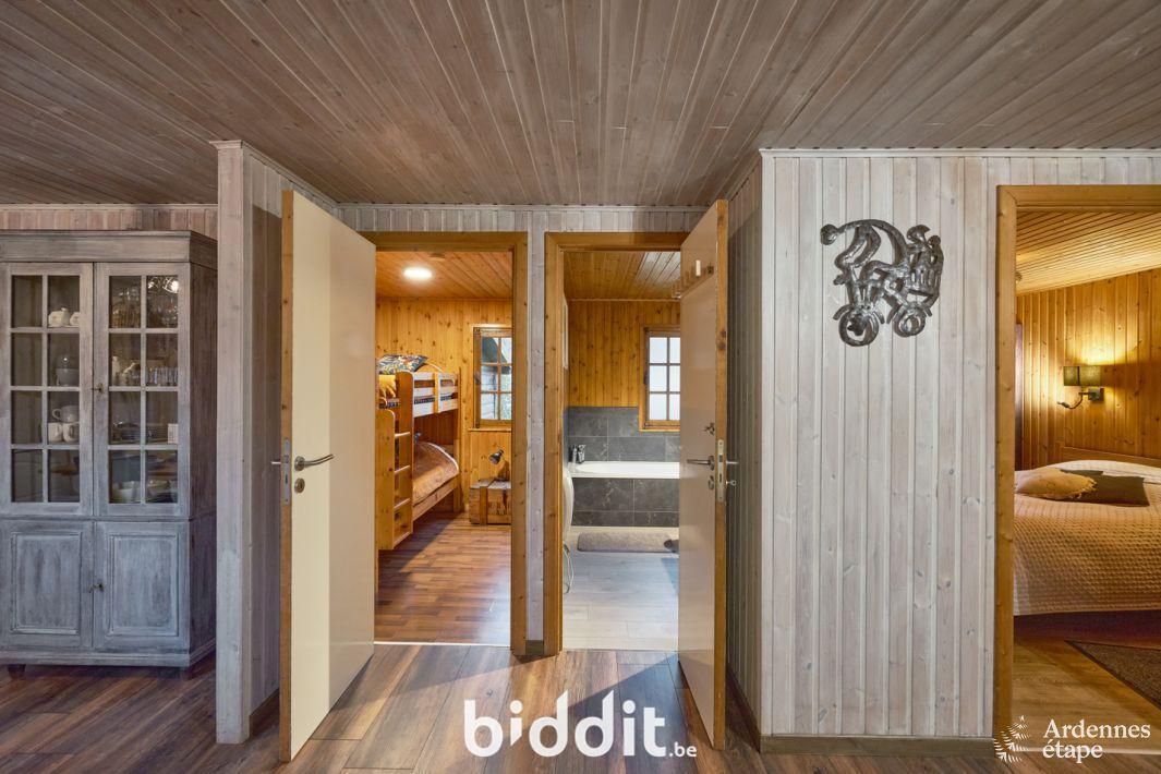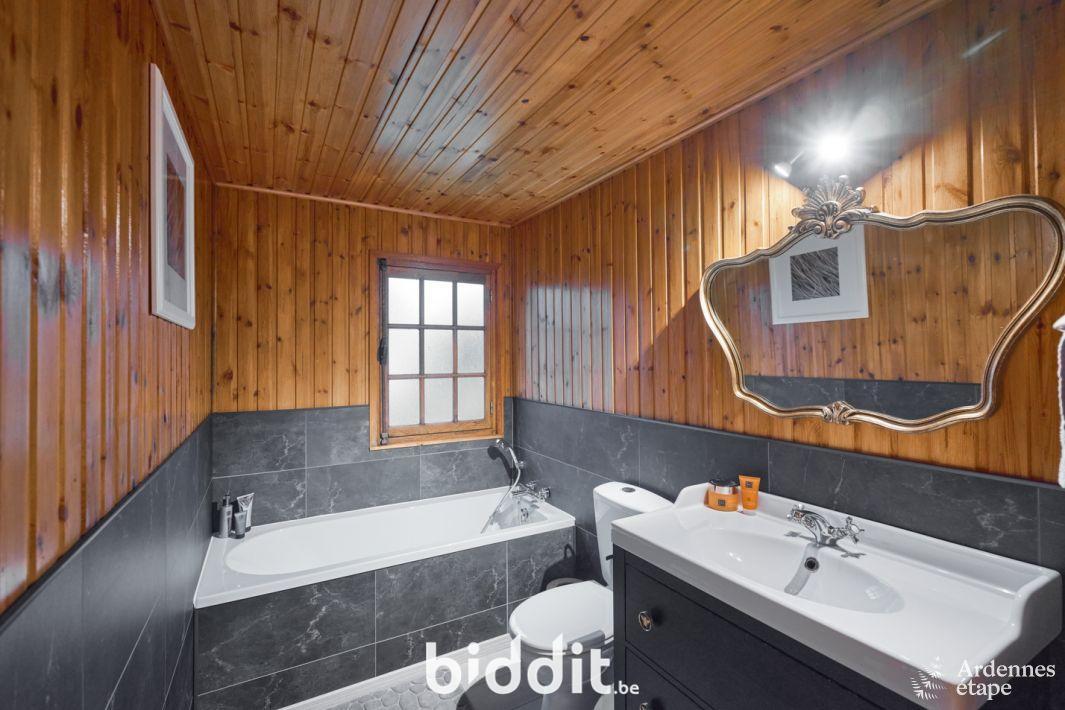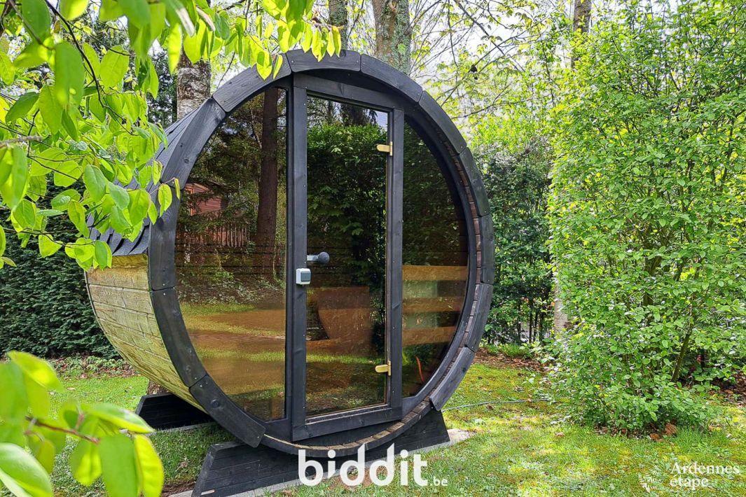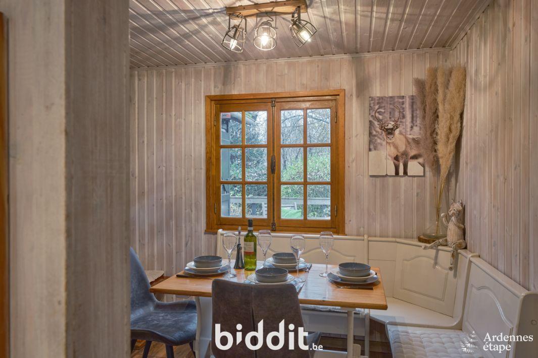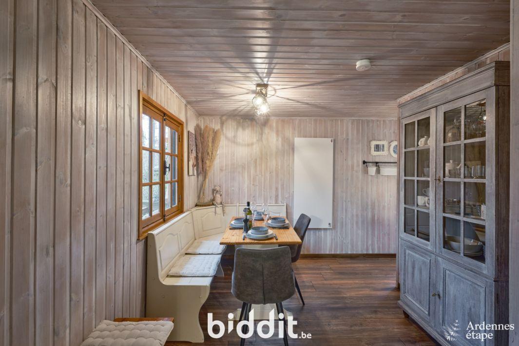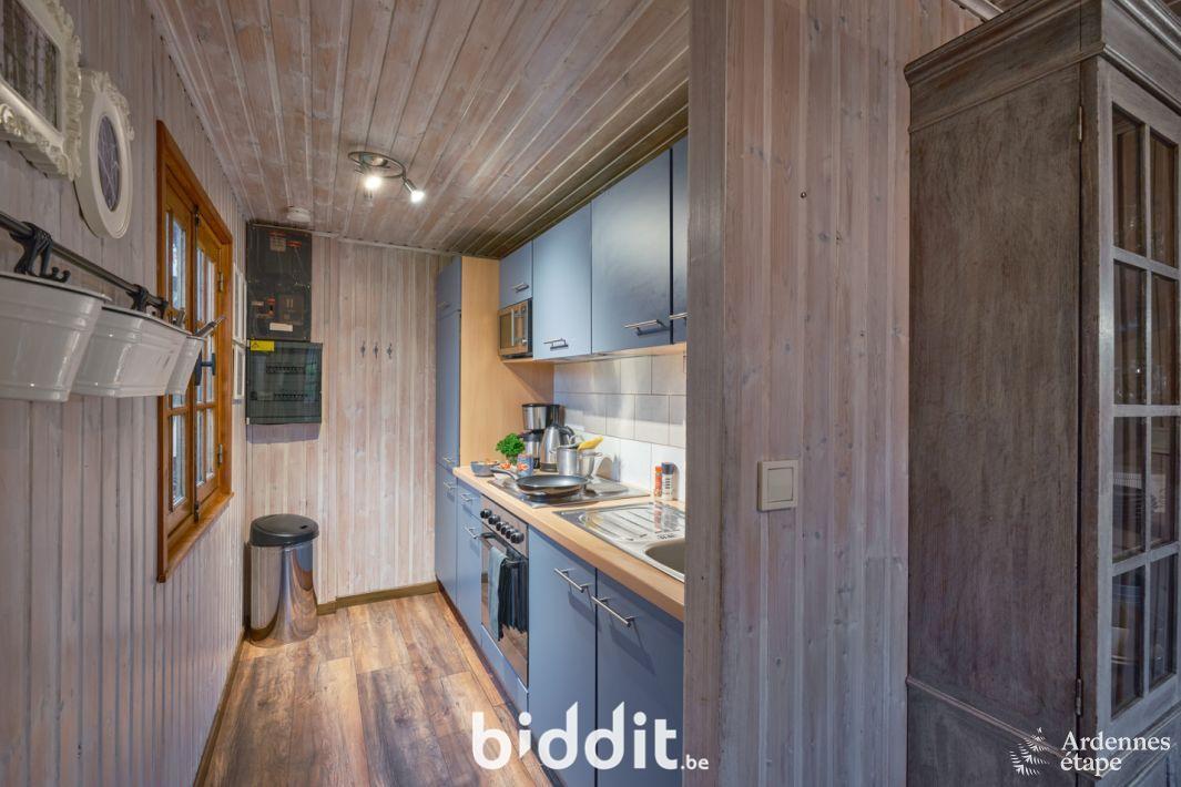 Ce chalet dispose de 2 chambres et d'une salle de bains et offre tout le confort nécessaire pour un séjour agréable. Le salon confortable est équipé d'un poêle à bois qui crée une ambiance chaleureuse pendant les soirées plus fraîches. Le véritable atout de ce chalet est sans aucun doute son sauna extérieur, où vous pourrez vous détendre après une journée riche en découvertes dans les Ardennes. Mobilier et équipement wellness inclus (sauna). Intéressés? Visites et informations : Monsieur GRYMONPON 0494/30.41.61 - luc@intueri.be