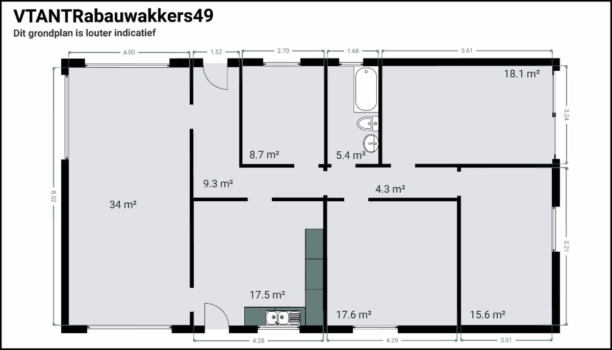 Woonkamer met haard en eetkamer. Ruime leefkeuken. 3 Slaapkamers, bureaukamer en badkamer.