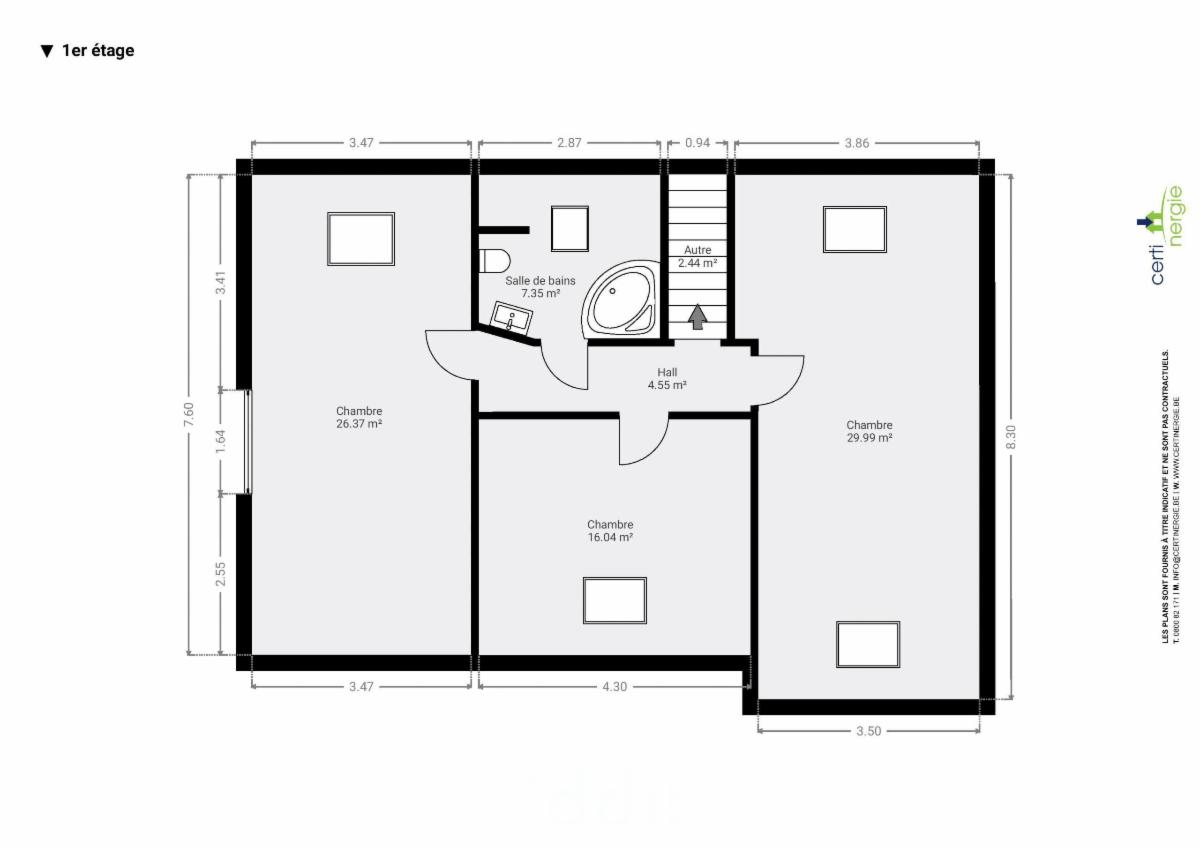 PEB : bien classé en catégorie C (255 kWh/m²/an de consommation spécifique d’énergie primaire).