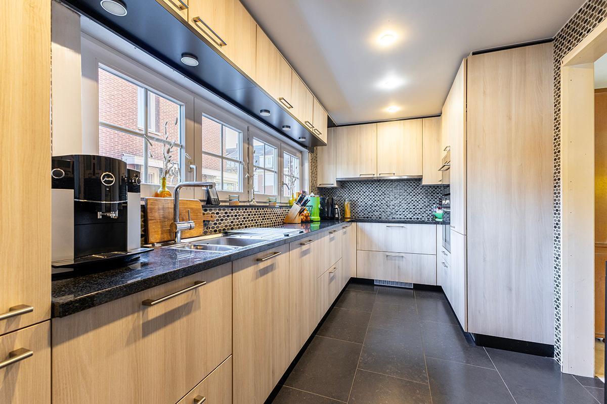 De keuken is uitgerust met een granieten werkblad en degelijke toestellen van Miele en Atag. Aansluitend bevindt zich een handige berging en wasplaats. Perfect voor wie graag overzicht en ruimte bewaart.