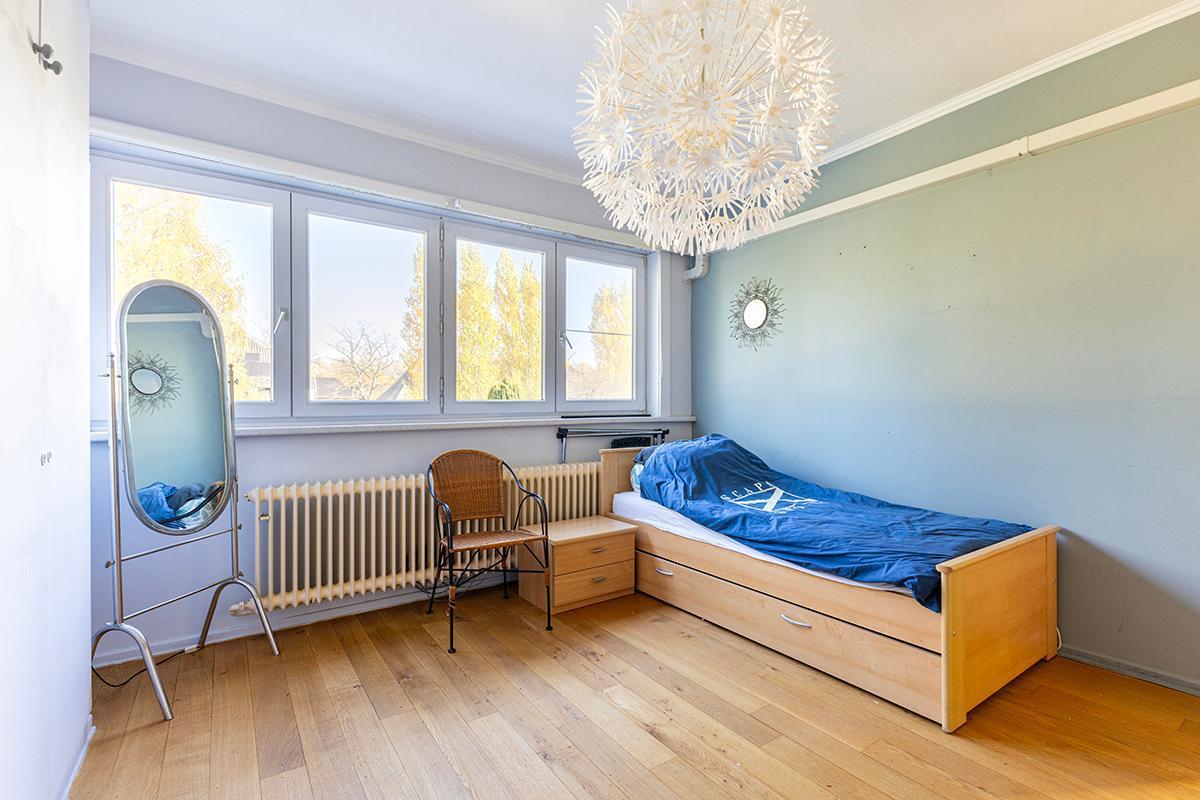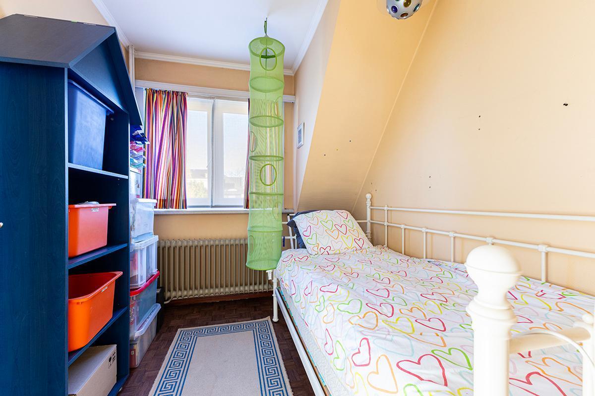 Op de eerste verdieping tref je drie slaapkamers aan: de ruime kamer vooraan is voorzien van airco. Achteraan vind je een grote slaapkamer met ingemaakte kasten en een derde, kleinere kamer die ideaal is als kinderkamer, bureau of dressing.