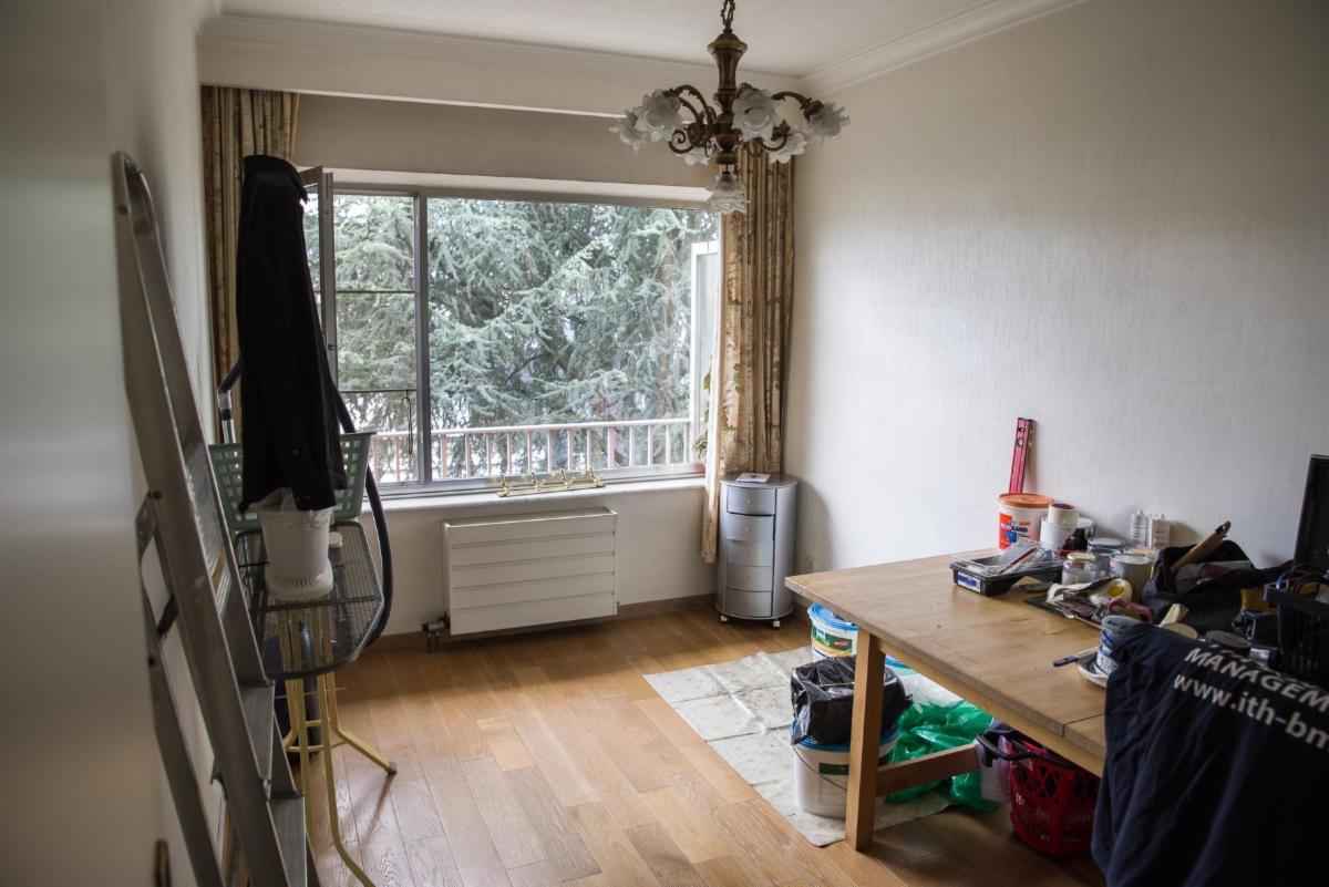 Indeling: inkomhal met vestiaire, apart toilet, woonkamer, keuken, badkamer met ligbad en dubbele lavabo, twee slaapkamers.
