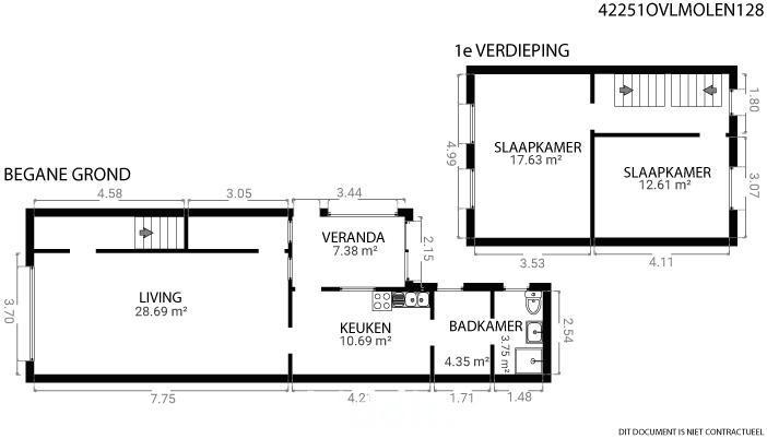 Op de eerste verdieping: twee (slaap)kamers en overloop.