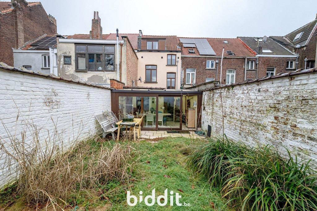 Vaandelstraat 10, opp. 1a 35ca. Omvattende : kelderverd. : kelders – gelijkvl. : hal, salon, eetkamerr, keuken, wc, veranda – 1e verd. : hal, 1 slaapk., badk. met wc – 2e verd. : hal, 2 slaapk. Vrij van gebruik. Woongebied. EPC : G/511. Contr. elektr. niet conform. Bezoekdagen vanaf 20/10 t.e.m. 3/12 : elke zaterdag van 10-12u en elke woensdag van 17-19u.
