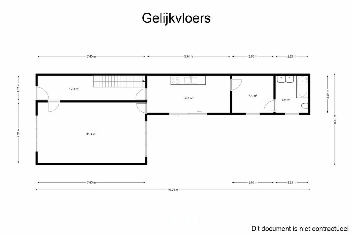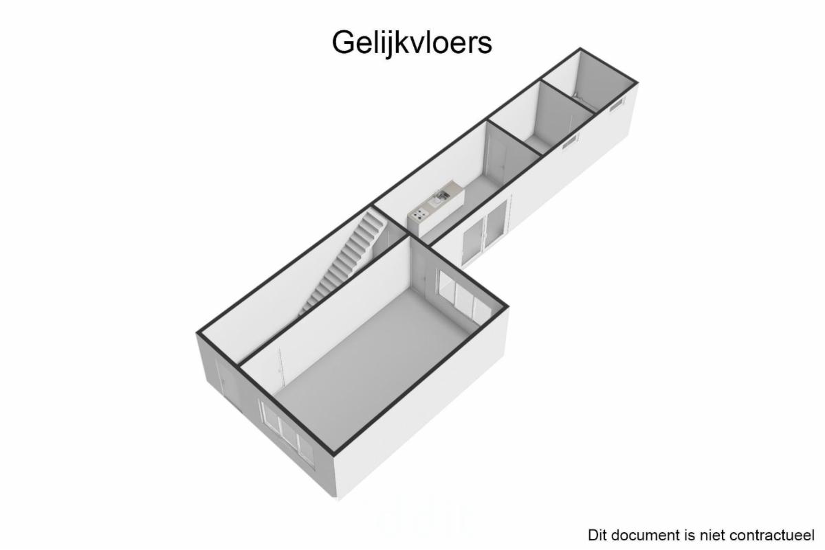 - gelijkvloers: hal, woonkamer, keuken, berging, badkamer;