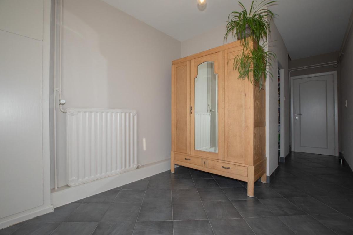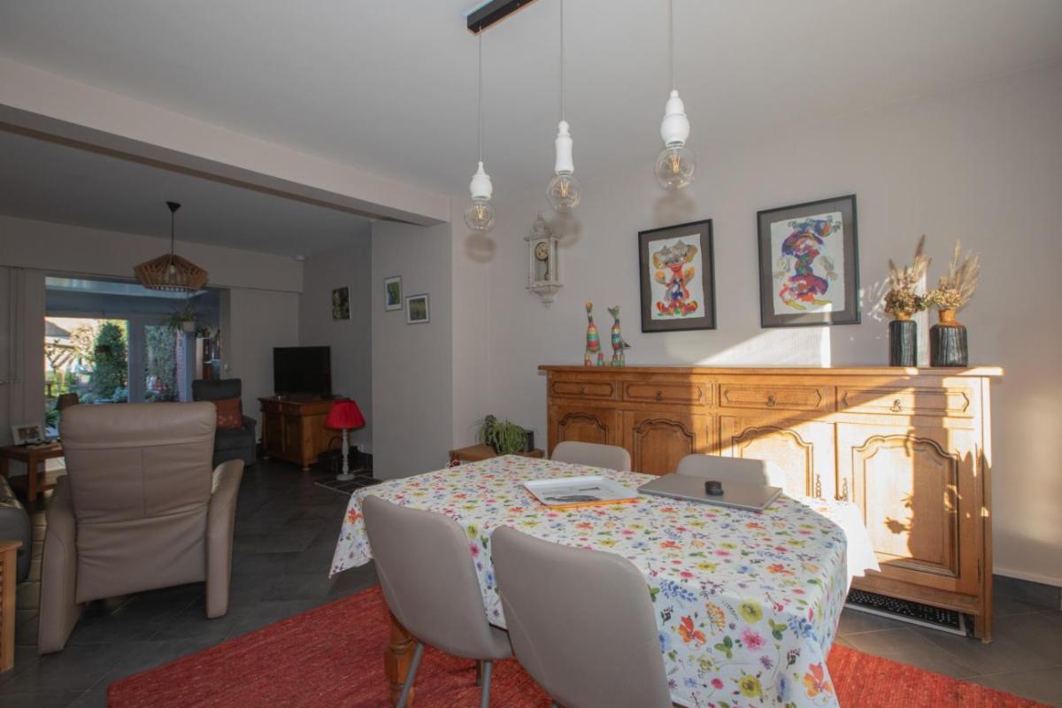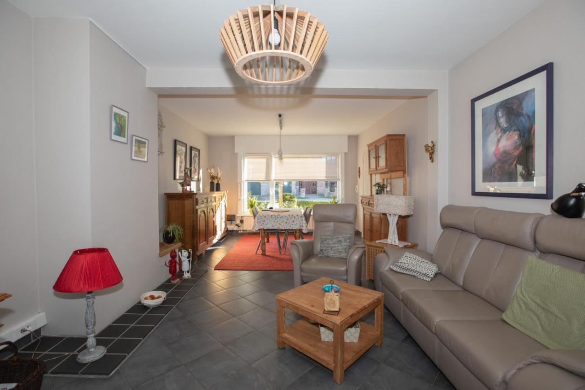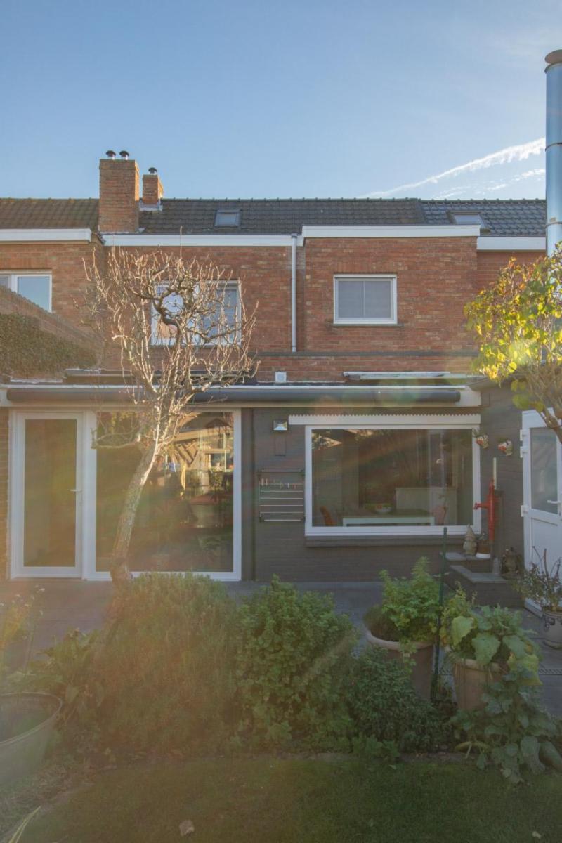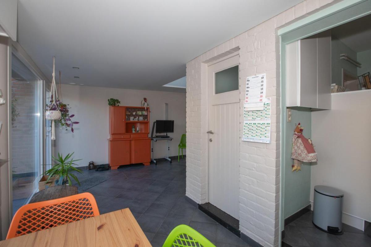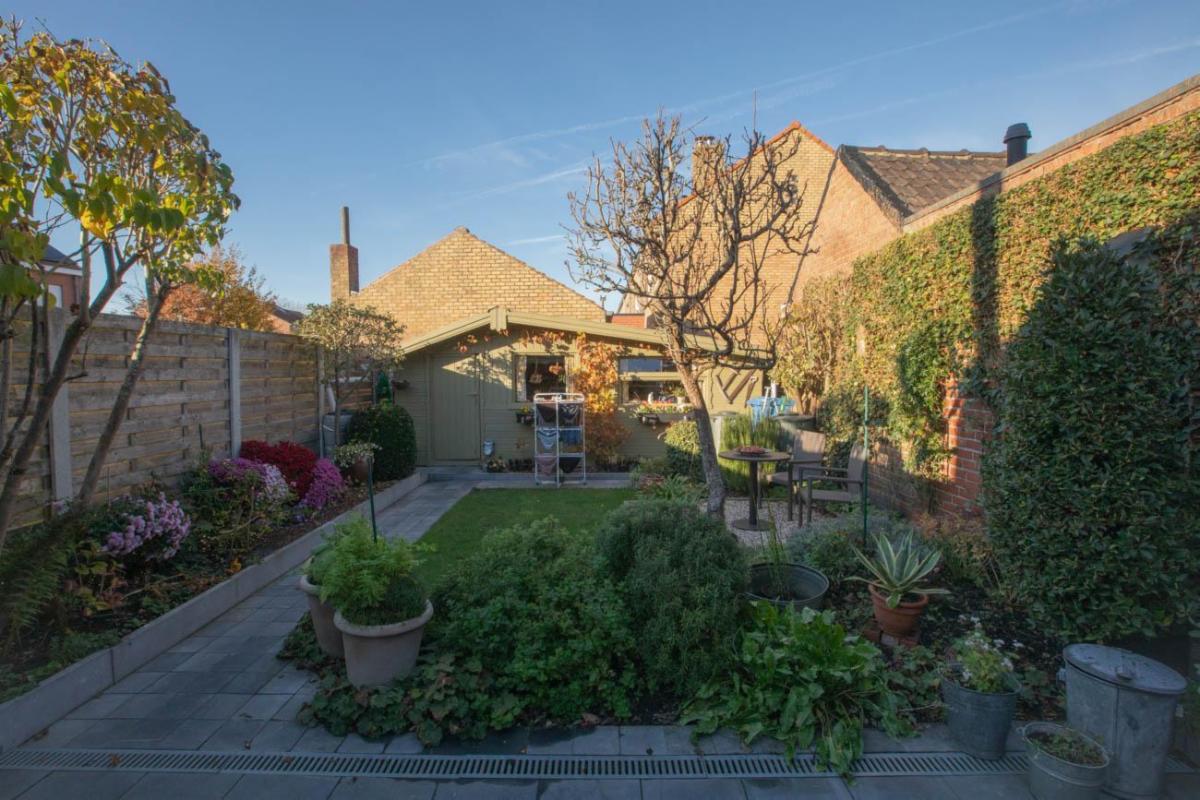 De woning beschikt over een ruime inkomhal met berging, lichtrijke woonkamer, volledig uitgeruste keuken en een aangebouwde ruimte met toegang tot de tuin met tuinhuis.