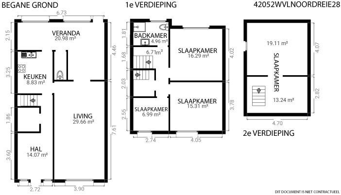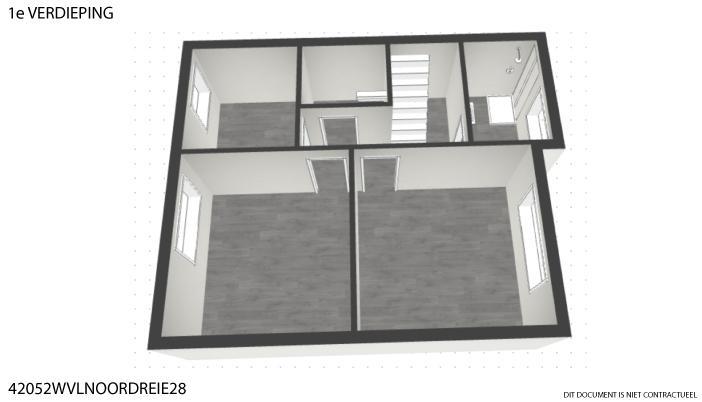 Op de verdieping bevinden zich de badkamer, 2e toilet en 3 slaapkamers. Via de vaste trap bereik je de ruime zolder.