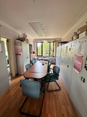 Un hall, un WC, une ancienne véranda, un grand bureau côté jardin, une grande pièce côté jardin, un espace de bureaux de type open space sis côté rue - au niveau du premier étage : Un hall, un grand bureau, un petit débarras avec placards encastrés, une petite pièce avec évier faisant office de débarras, une grande pièce, une cuisine vétuste, une salle de douche avec WC, une grande salle de réunion, un bureau côté rue - au niveau de l’extérieur : deux jardins