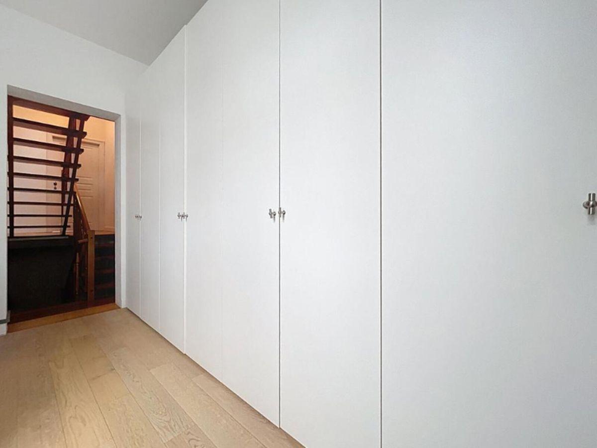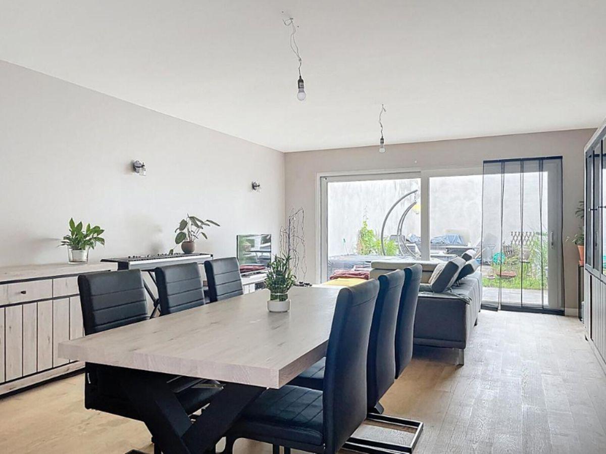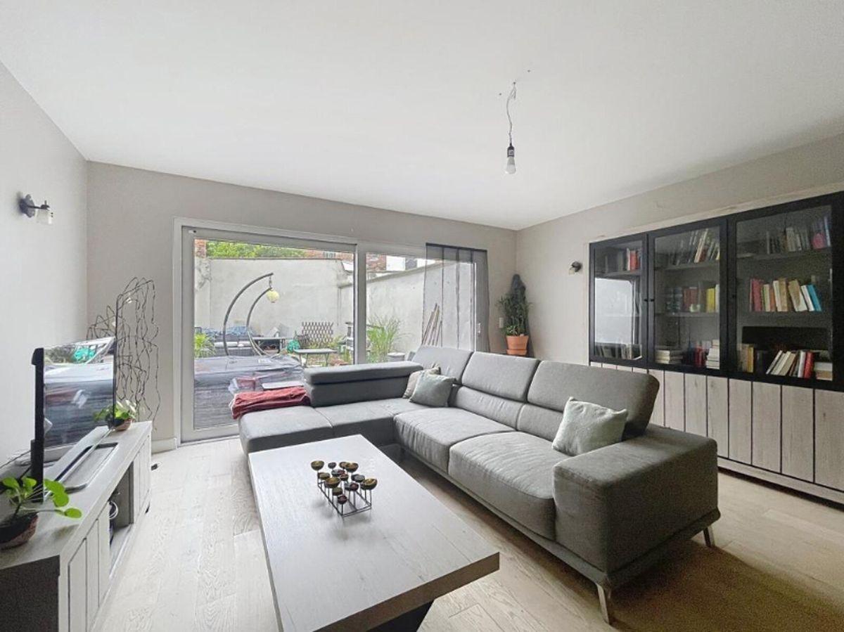 Energiezuinige herenwoning in het hart van de stad, bestaande uit een inkomhal met vestiaire en afzonderlijk toilet, een wasplaats met douche, een ruime leefruimte met polyvalente ruimte, een volledig uitgeruste open keuken en een onderhoudsvriendelijke, zuidgerichte stadstuin.