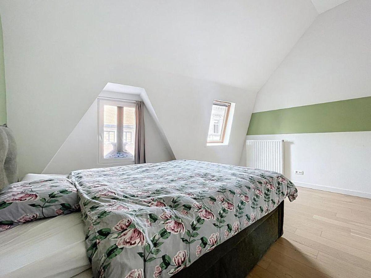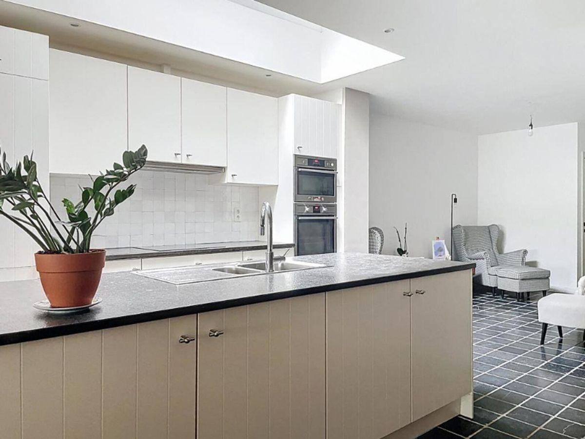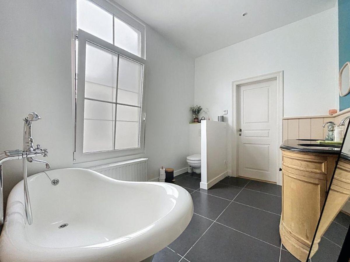 Energiezuinige herenwoning in het hart van de stad, bestaande uit een inkomhal met vestiaire en afzonderlijk toilet, een wasplaats met douche, een ruime leefruimte met polyvalente ruimte, een volledig uitgeruste open keuken en een onderhoudsvriendelijke, zuidgerichte stadstuin.