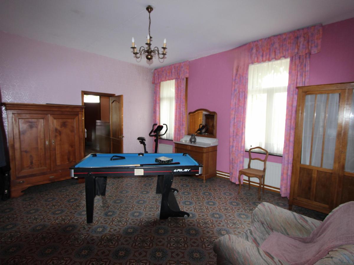 RDC: 1 séjour, une salle de bain (avec baignoire et lavabo), 1 salle de billard, 1 cuisine équipée, 1 salon, 1 salle à manger et 1 wc.