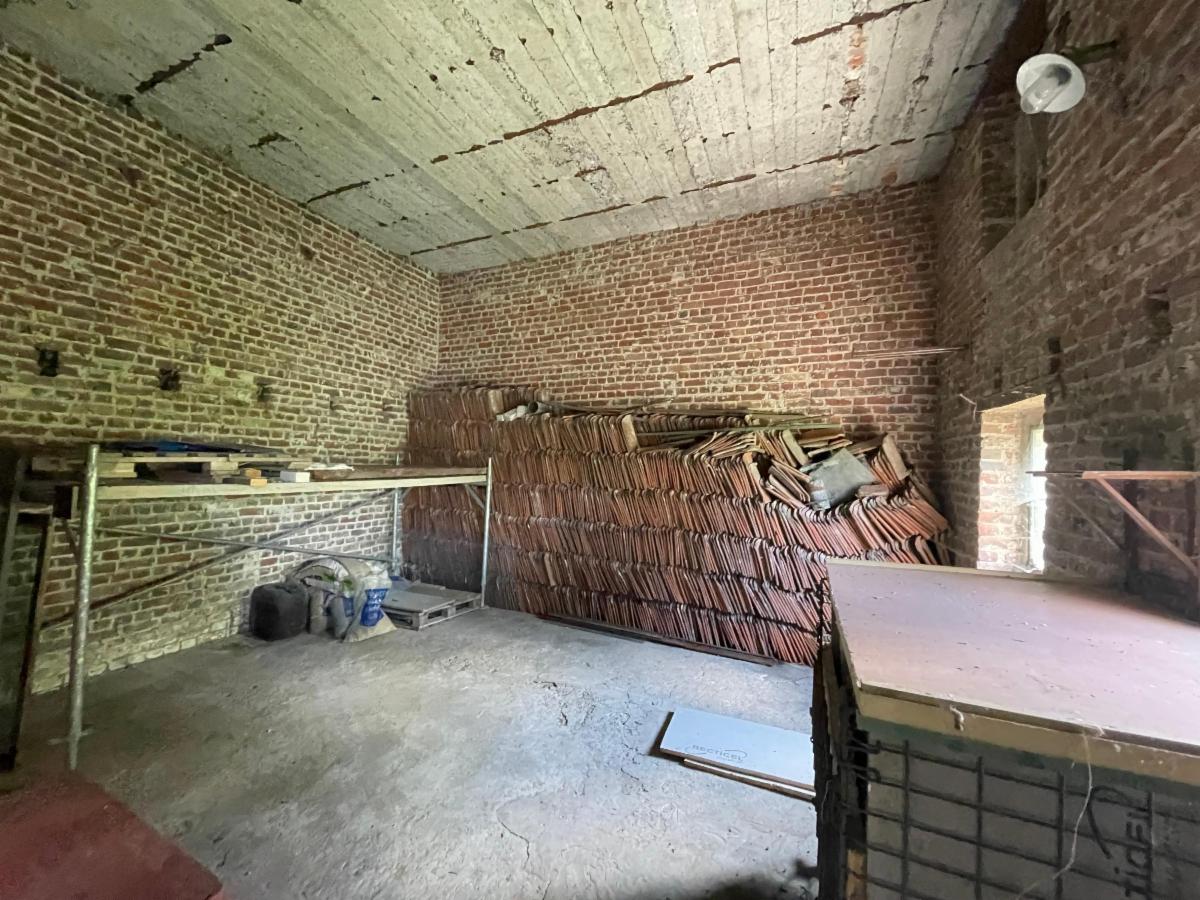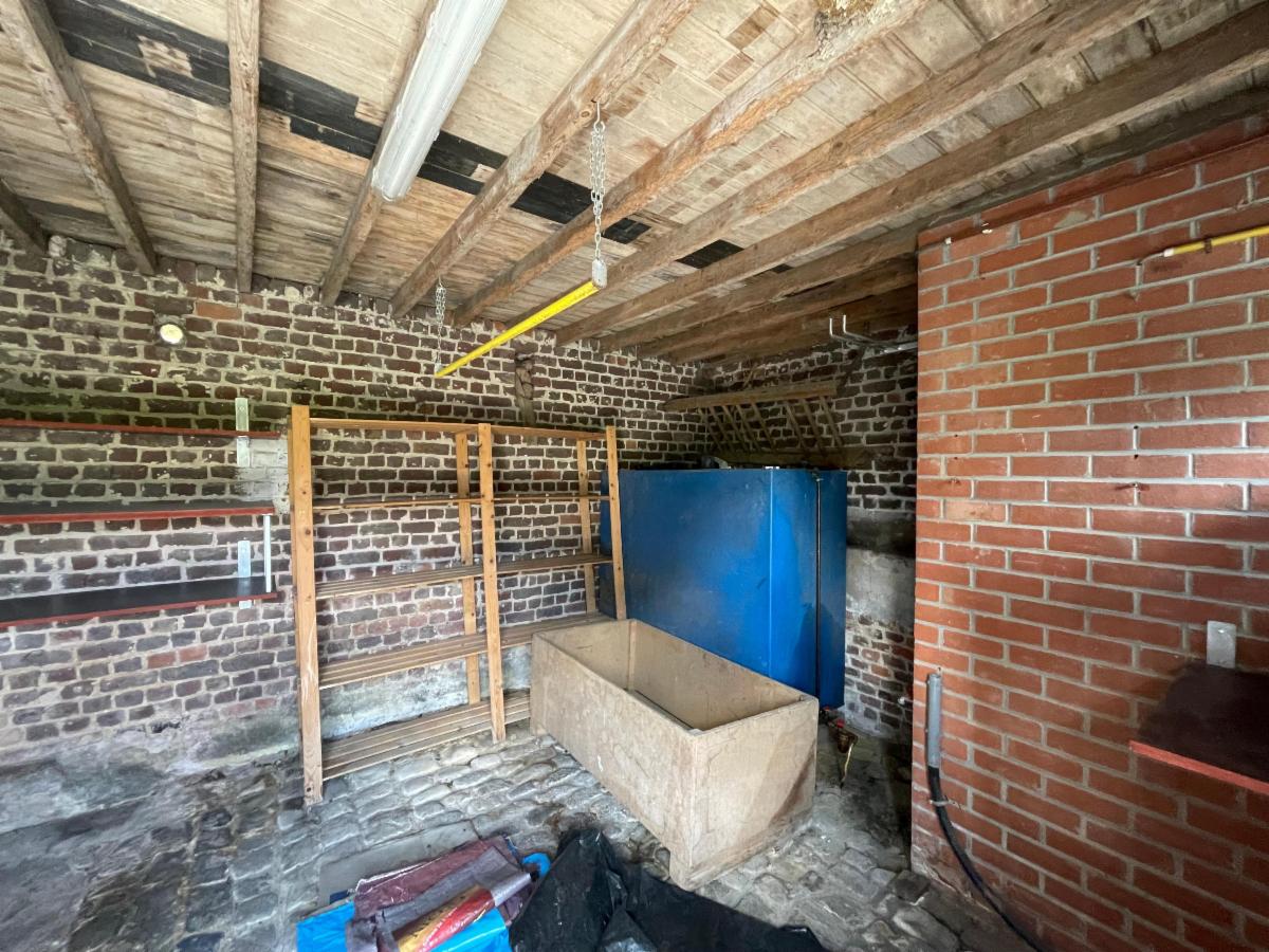 Pottes, rue de la Gare 14 - Authentique fermette à rénover avec un bâtiment rural en façade, et terrain sur et avec 22a 84ca, suivant mesurage. L'habitation est composée d'un living, une cuisine, deux chambres, une salle de bains et une remise. A l'étage: un grenier. Le bâtiment rural est dans un bon état d'entretien et dispose de grandes portes d'accès traversantes et d'un grenier. Petite dépendance à l'arrière (ancien four à pains) et beau terrain avec vue sur la campagne environnante. Libre d'occupation. La propriété est située en zone d'habitat à caractère rural sur les 50 premiers mètres à partir du front à rue, le solde se trouvant en zone agricole. Les visites sont assurées le mercredi de 14h à 16h et le samedi de 10h à 12h, uniquement sur rendez-vous par l'Etude (069/66.60.11).