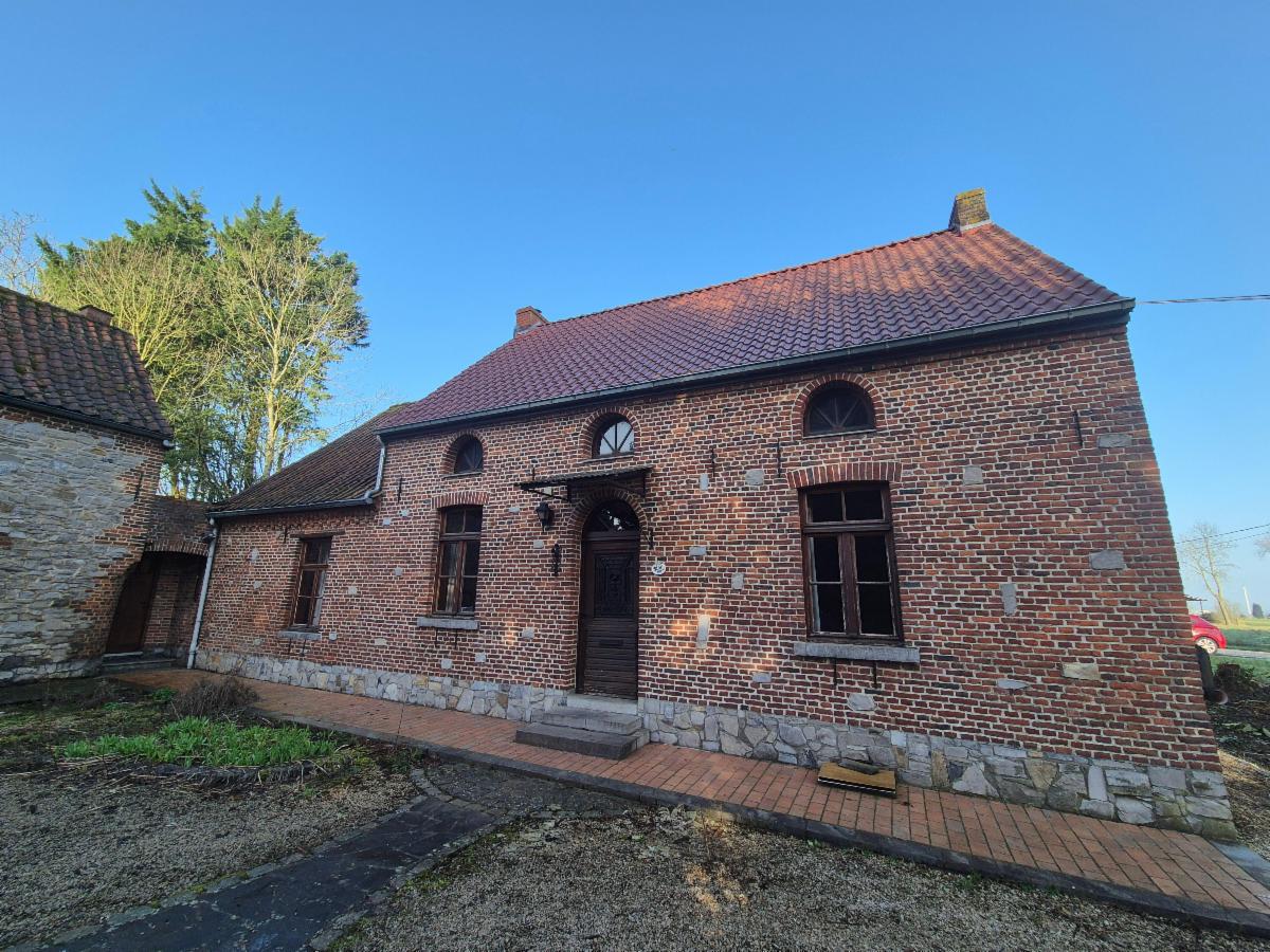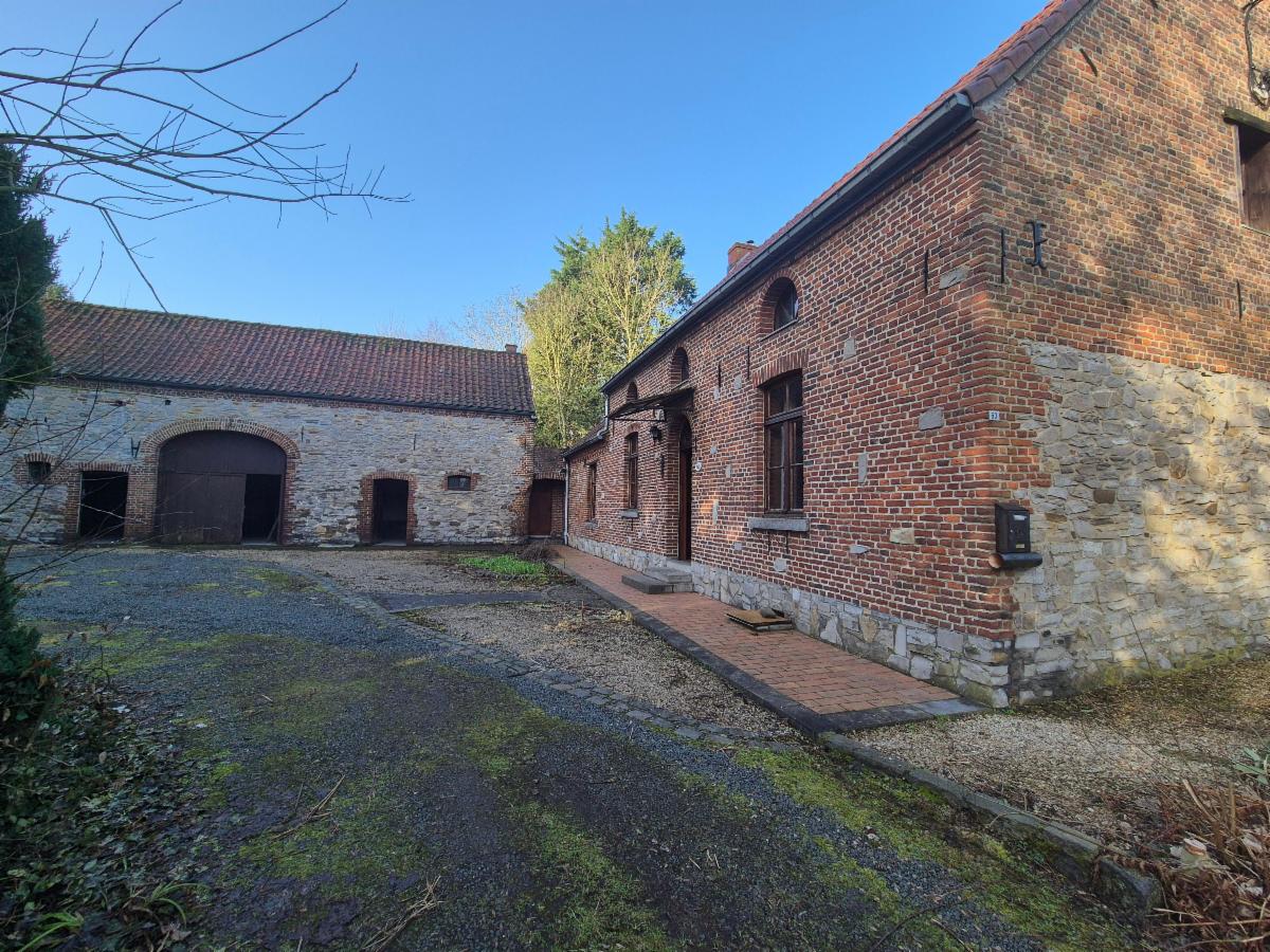 À Tourpes, ancienne fermette de caractère à rafraichir offrant de beaux volumes et un important potentiel d’aménagement, idéale pour projet familial ou professionnel.