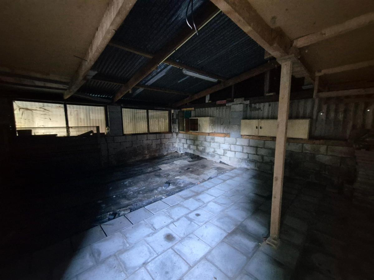 Terrain total de 5820 m² avec une terrasse de 32 m²; Entrepôt traversant comprenant : une entrée (16 m²), une chaufferie avec cuve à mazout (31 m²), une pièce supplémentaire (18 m²). La hauteur de l’entrepôt permet la création d’un étage supplémentaire de 50 m², pour l'instant accessible avec une échelle ; garage de 29 m² (porte de 2,40 m x 2,20 m), grand carport de 66 m²