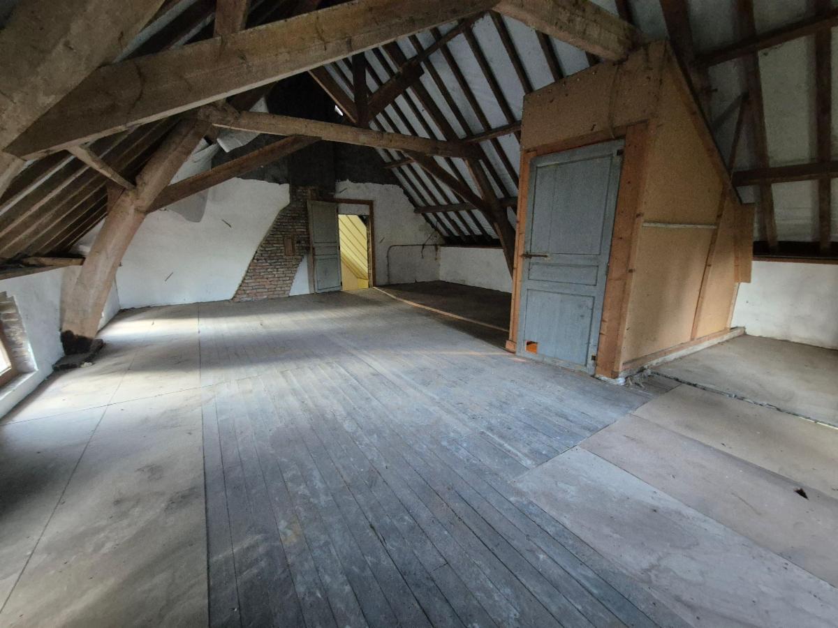 Charpente en excellent état. Toiture du corps principal rénovée il y a ±5 ans. Il reste essentiellement les travaux d’isolation et d’aménagement pour exploiter ces volumes.