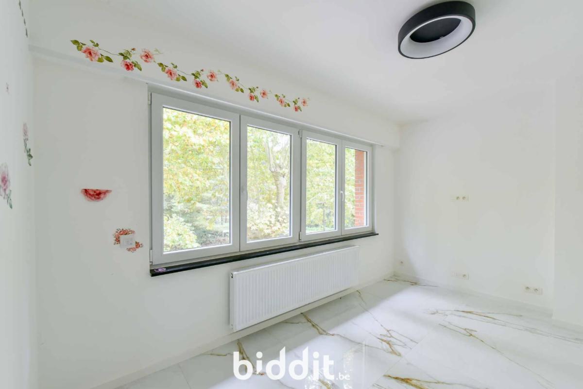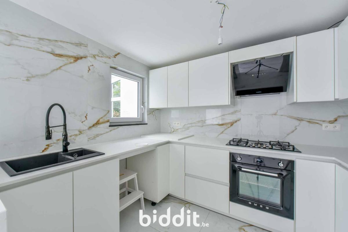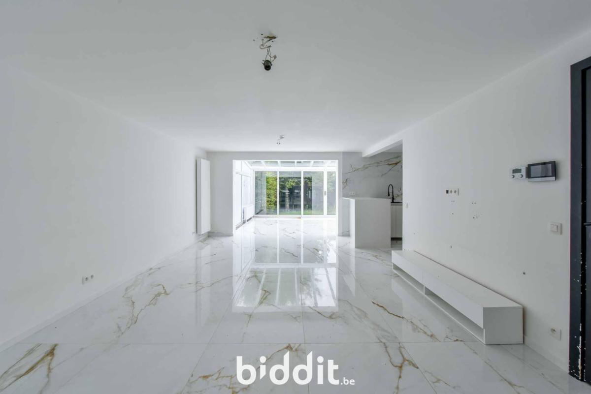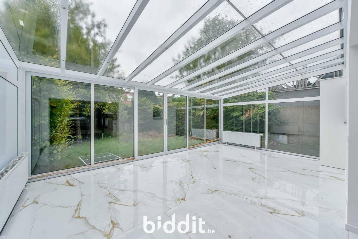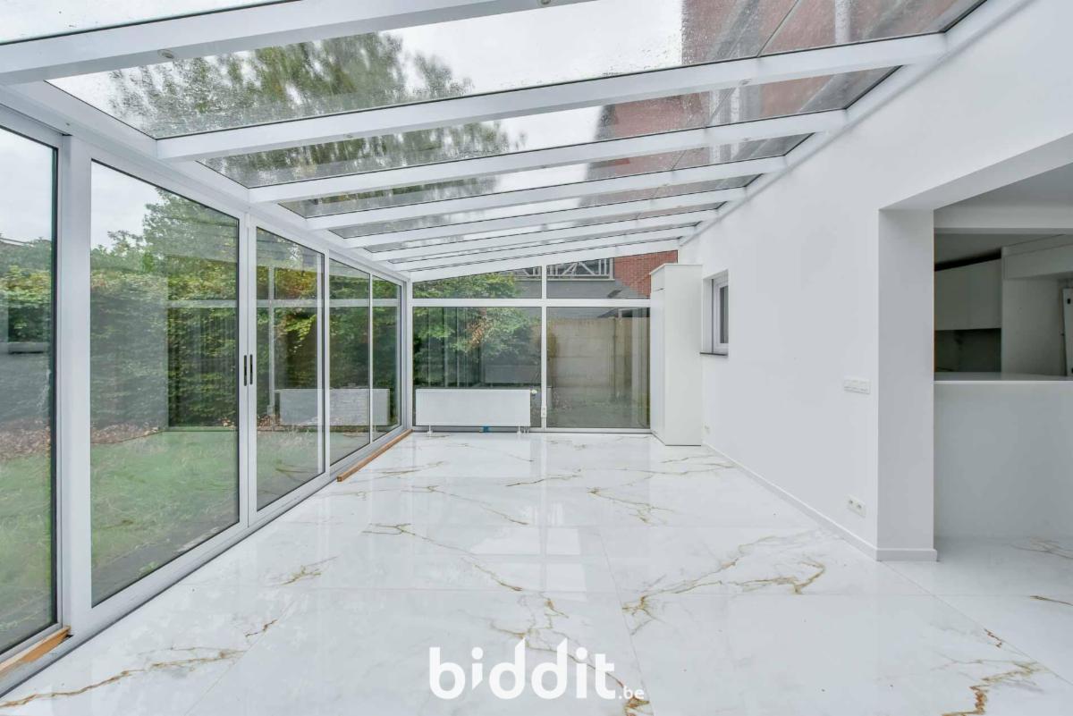 - gelijkvloers: inkomhal, aparte wc, ruime leefruimte, keuken die toegang biedt tot een veranda en tuin met voortuinstrook en zijtuinstrook met oprit;