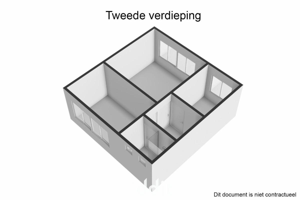 - 2e verdieping: 2 slaapkamers, badkamer (niet ingericht) en een extra douchekamer.