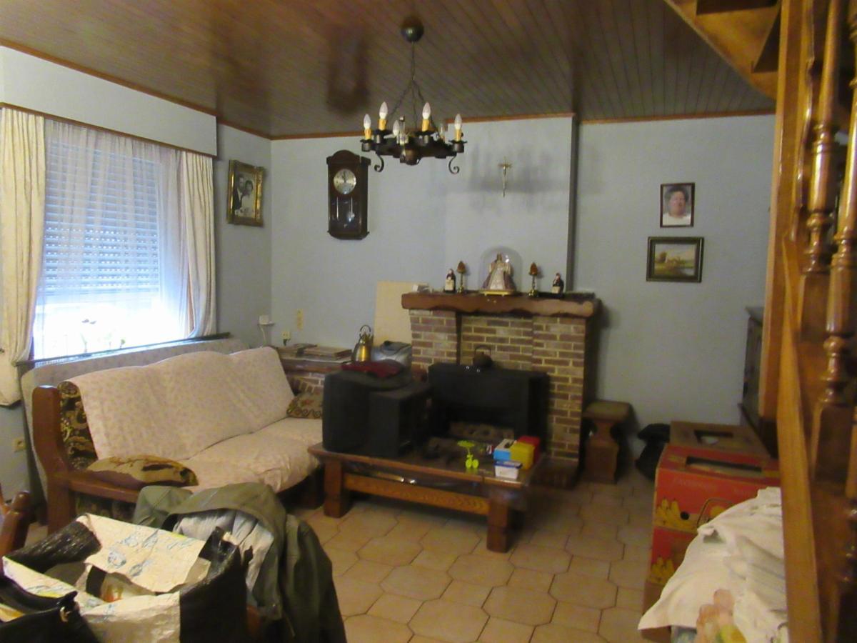- Woonkamer met gaskachel en trap naar de bovenverdieping