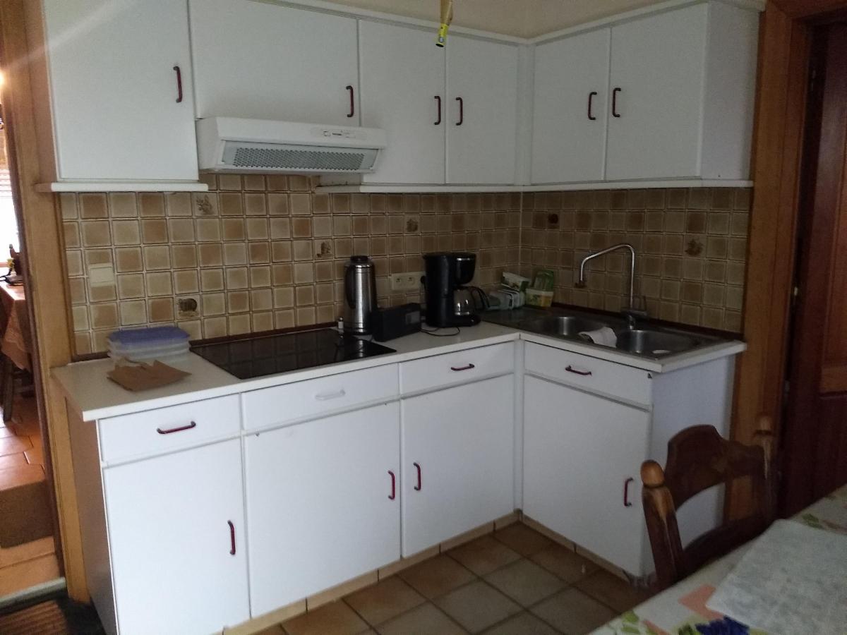 - Keuken met dubbele spoelbak, keramisch kookvuur en dampkap